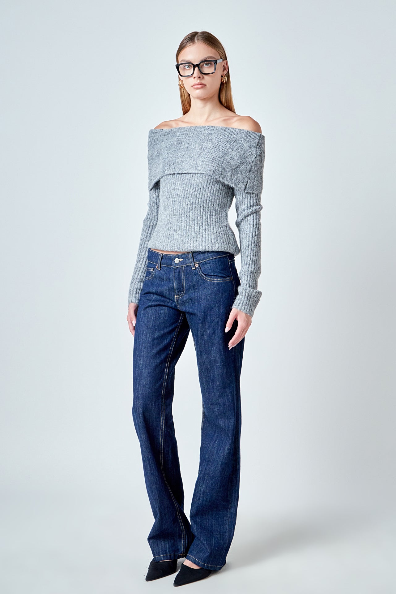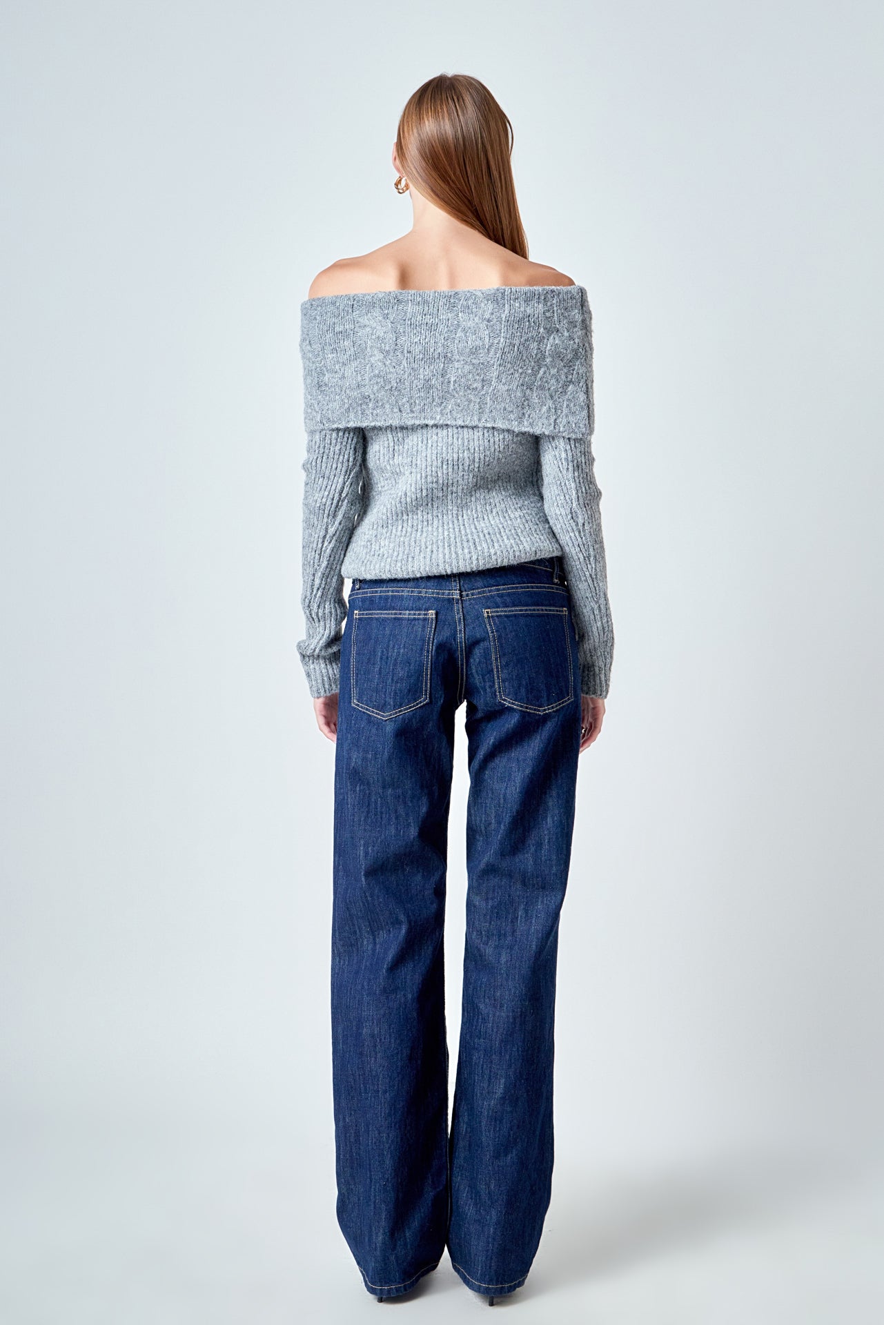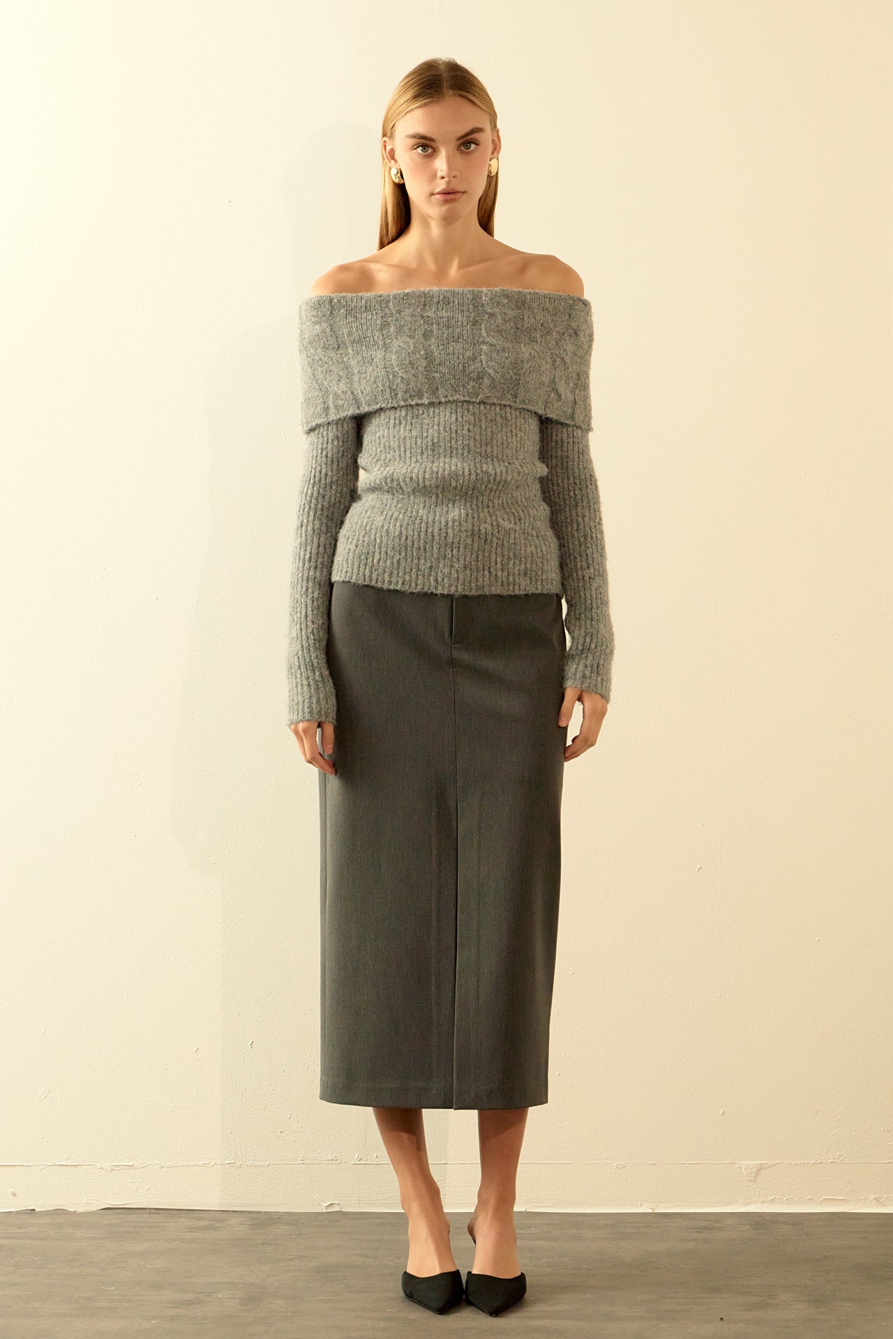 Off Shoulder Cable Knit Sweater
