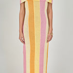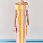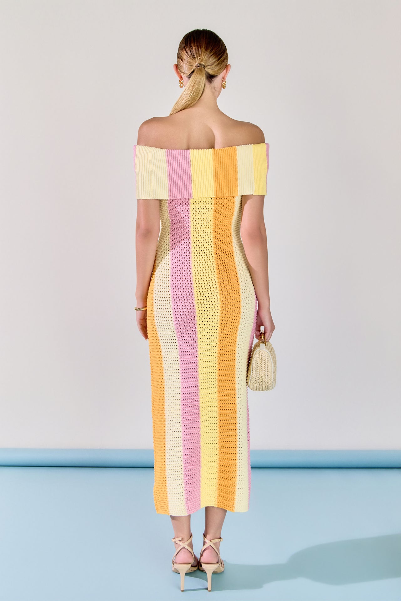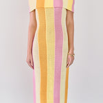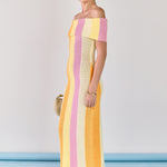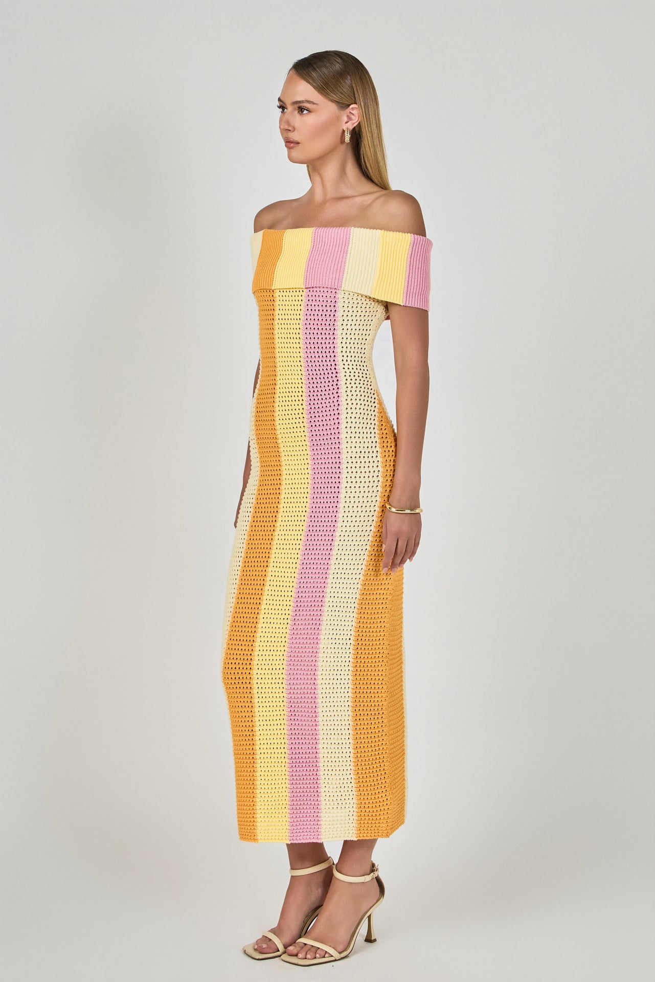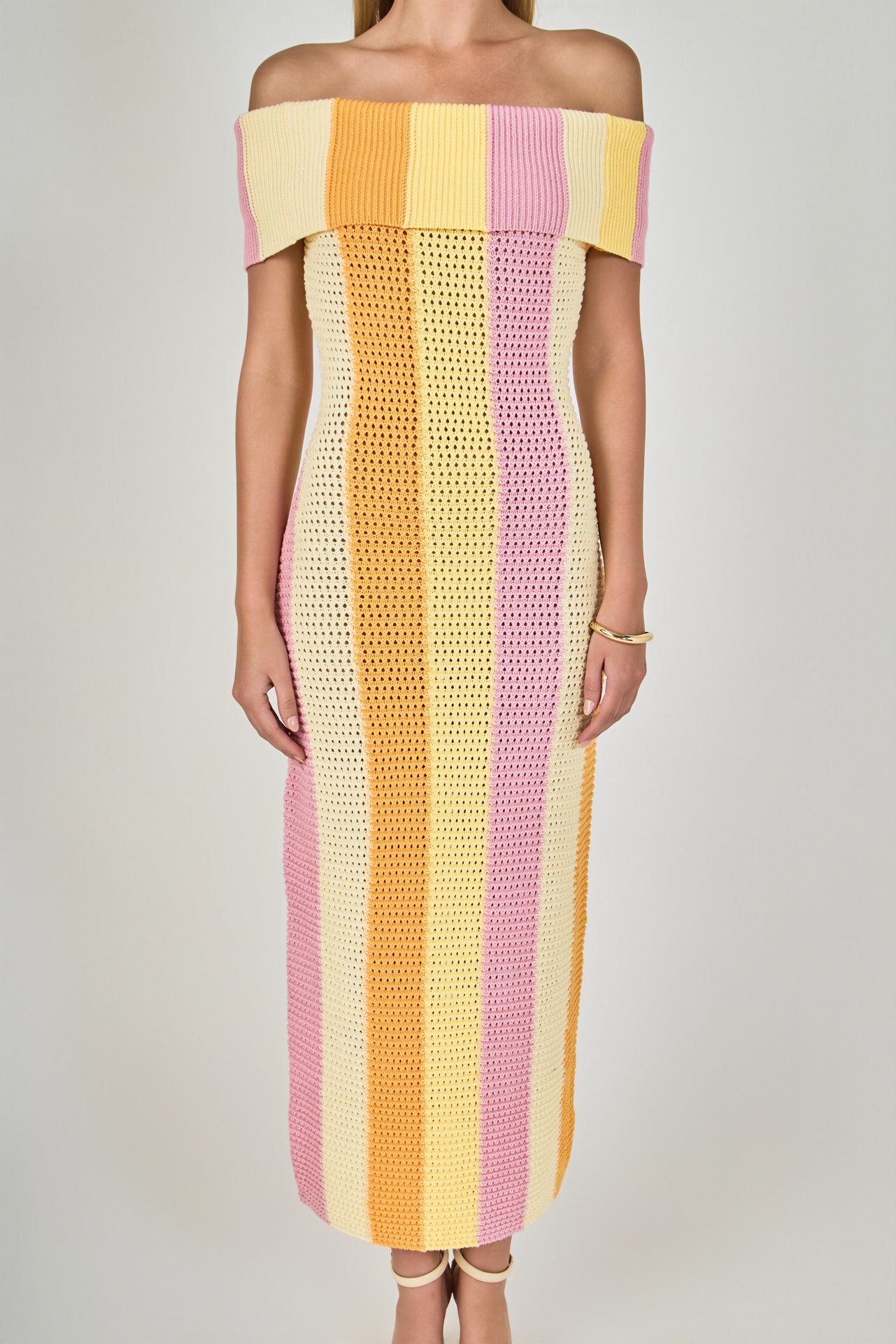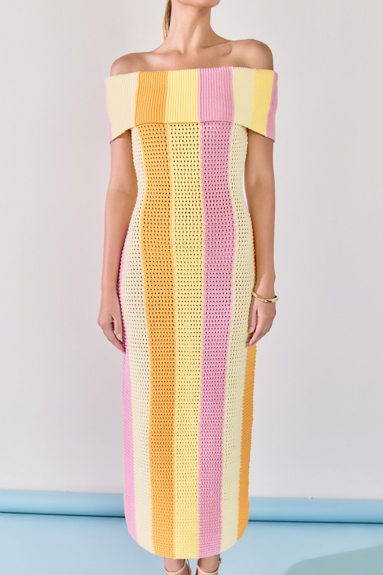 Introducing our stunning Off Shoulder Sleeveless Midi Dress, perfect for date nights, brunches, and beyond. The vertical stripe design adds an elongating effect while the knit fabric provides comfort and a flattering fit. The midi length exudes sophistication while the off shoulder style adds a touch of romance. This versatile dress is a must-have in every fashionista's wardrobe. Embrace effortless style and turn heads wherever you go. Don't miss out on this must-have dress. Get yours today and slay every occasion.