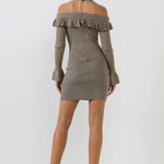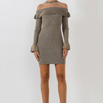This is the perfect little dress for a night out. The soft knit fabric feels great against your skin, and the off-the-shoulder neckline adds a touch of sexy sophistication. You'll love the ruffles on the shoulder and ruffle sleeves, and the long sleeve styling makes it perfect for chilly evenings. Whether you're going to dinner or dancing, this mini dress is sure to turn heads.