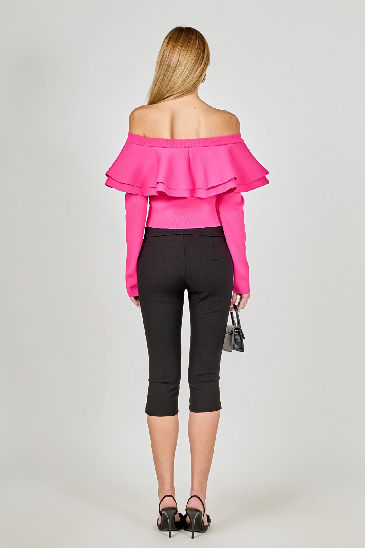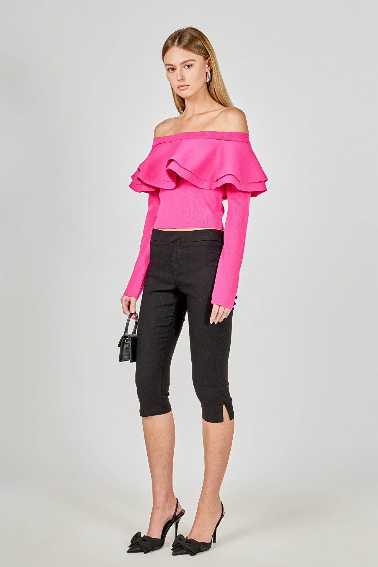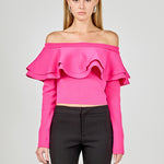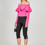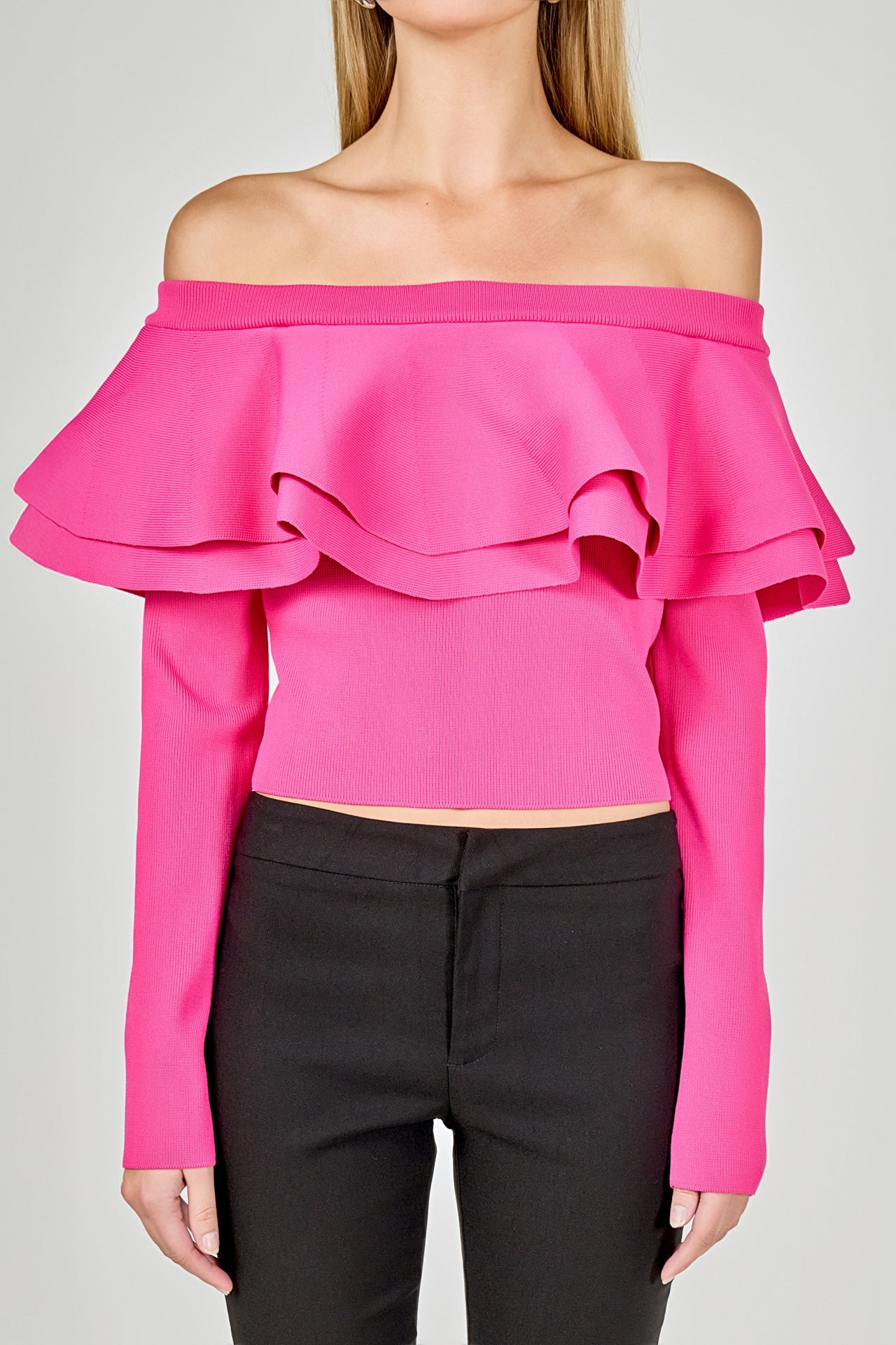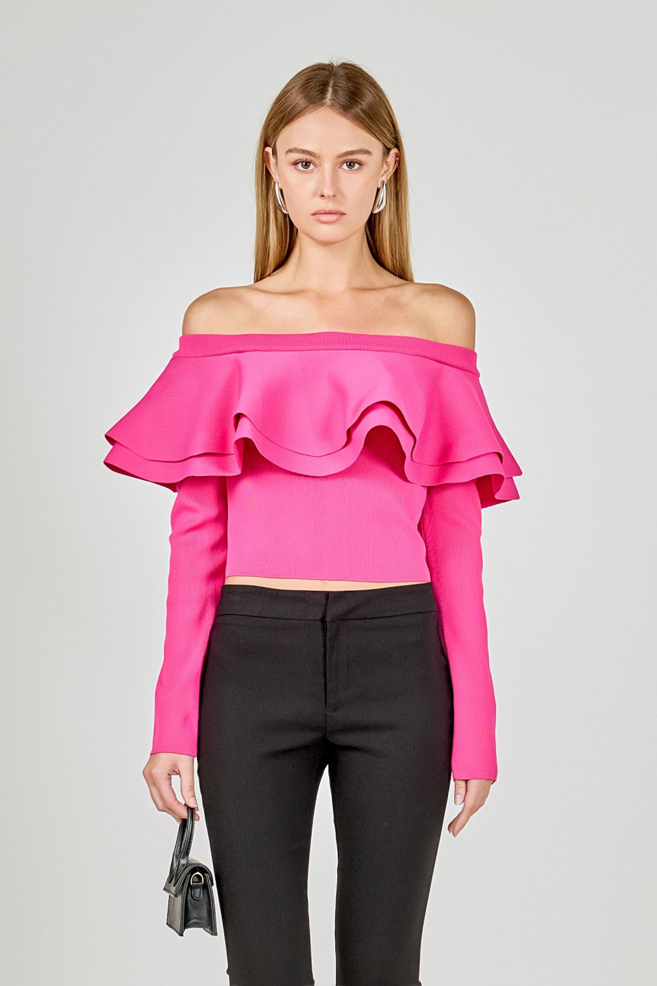The best way to show off those shoulders. This Off Shoulder Knit Top is perfect for your next night out. With long sleeves and a flare detail, this top is both flirty and stylish. Pair it with your favorite jeans and heels for a complete look.