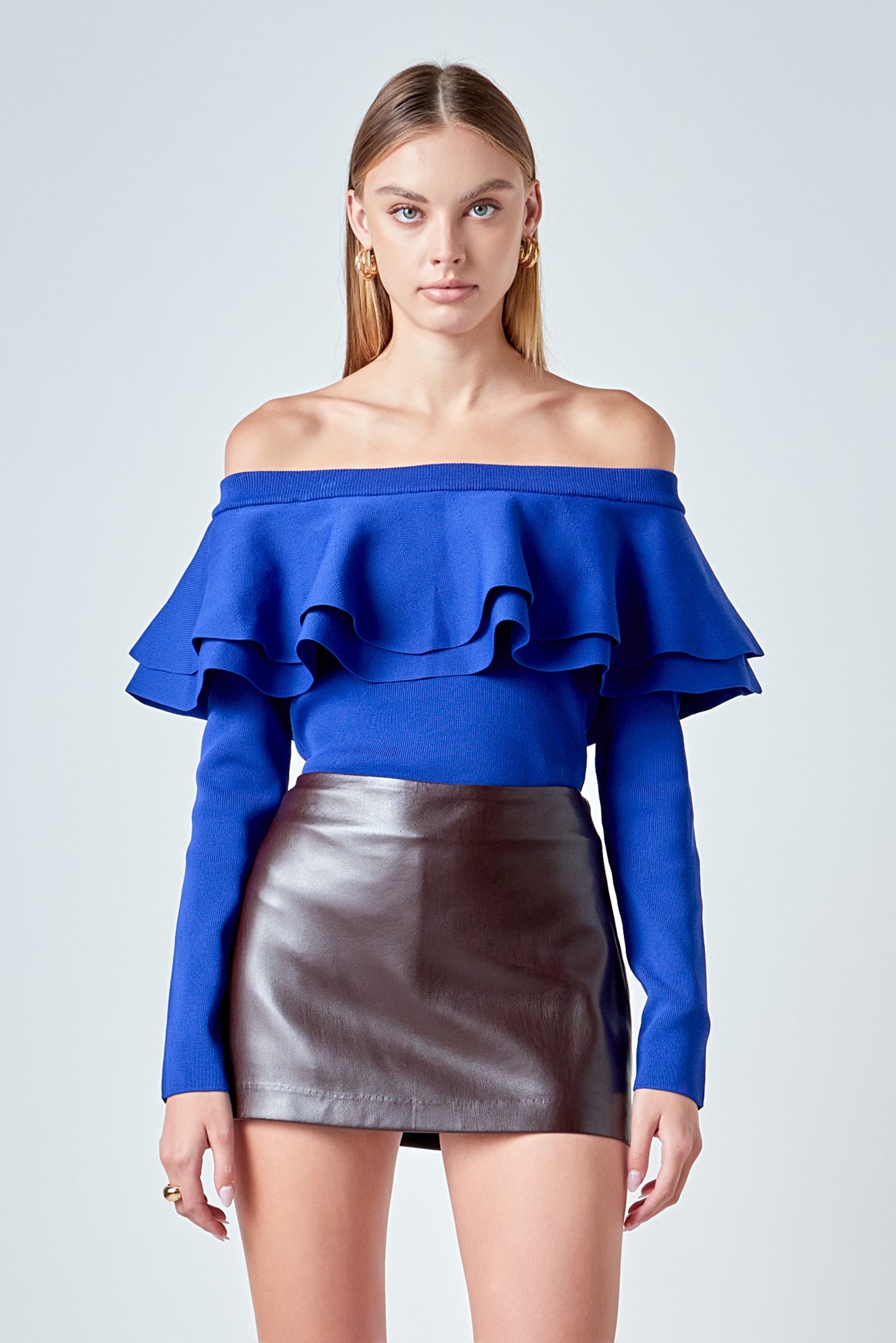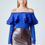 The best way to show off those shoulders. This Off Shoulder Knit Top is perfect for your next night out. With long sleeves and a flare detail, this top is both flirty and stylish. Pair it with your favorite jeans and heels for a complete look.