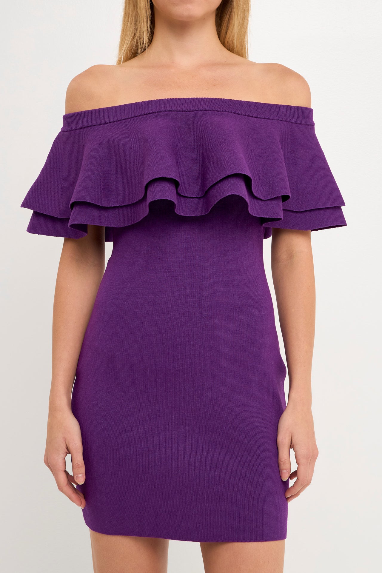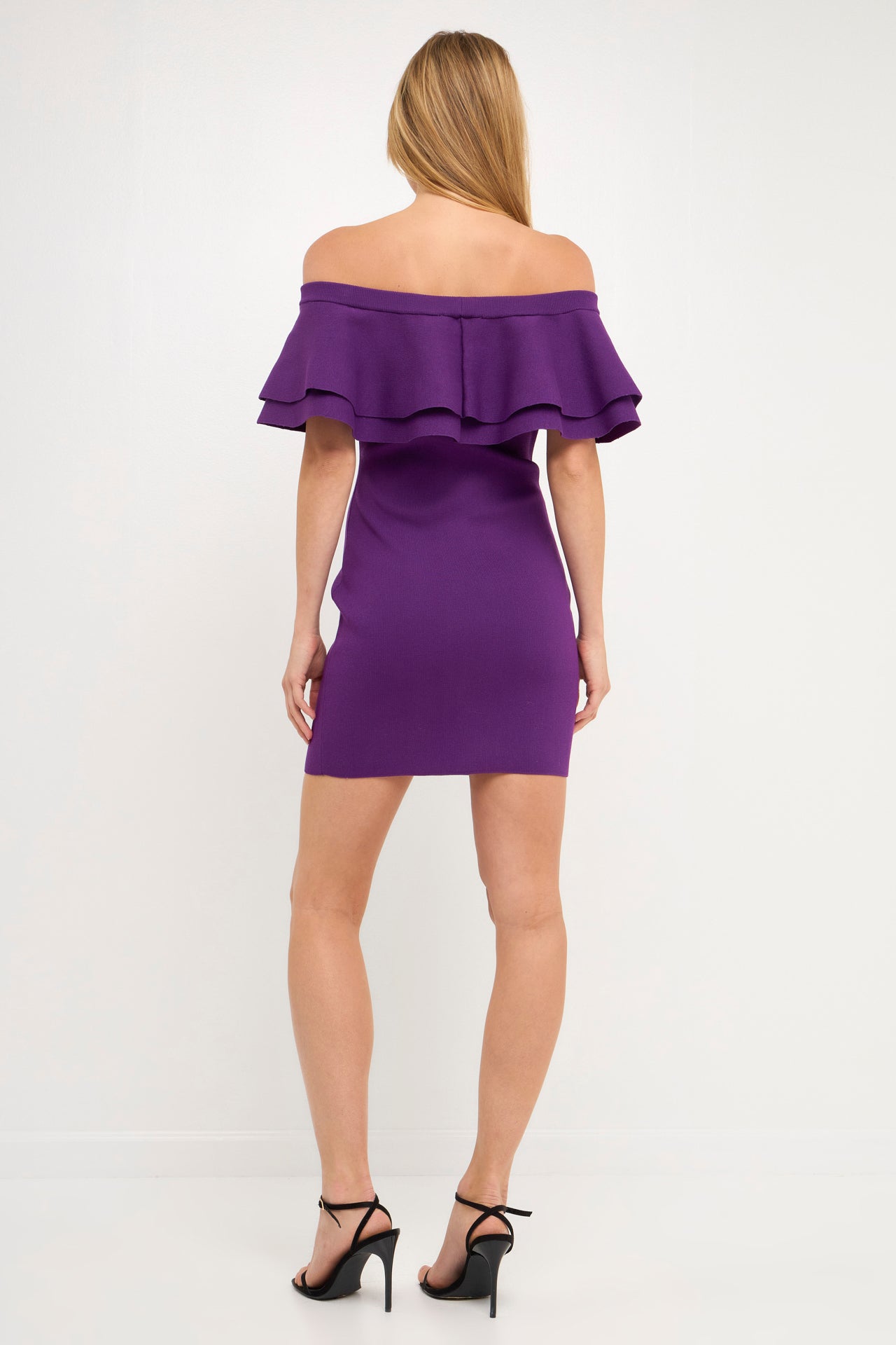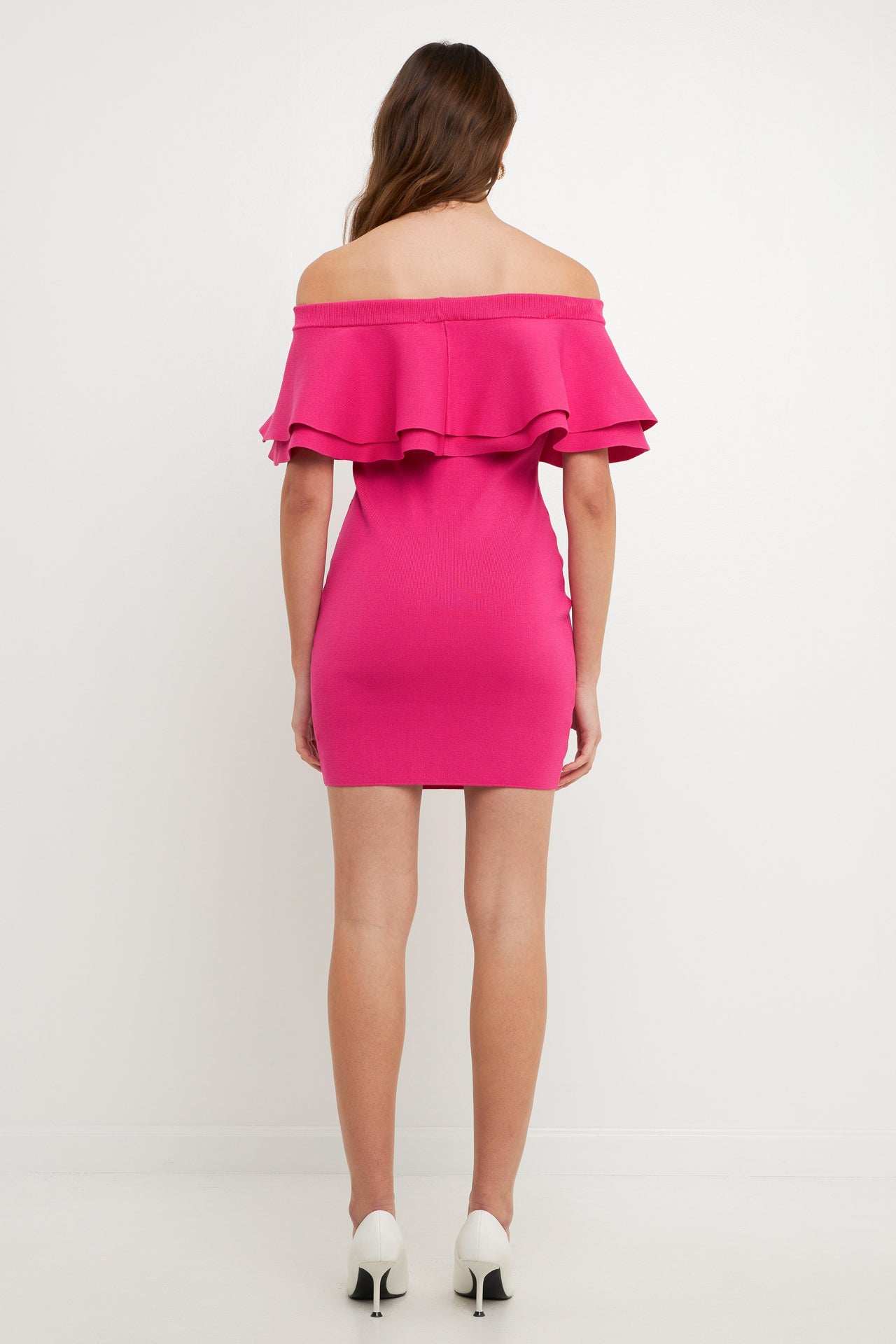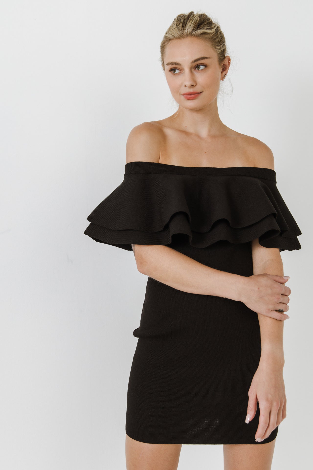 In this Off Shoulder Mini Dress, you'll look and feel amazing all night long. The 2 tiered ruffles and fitted silhouette hug your curves in all the right ways while the off the shoulder neckline is oh so flattering. Plus, the mini length is perfect for showing off your legs. Whether you're dancing the night away or sipping cocktails with friends, you'll turn heads in this dress.