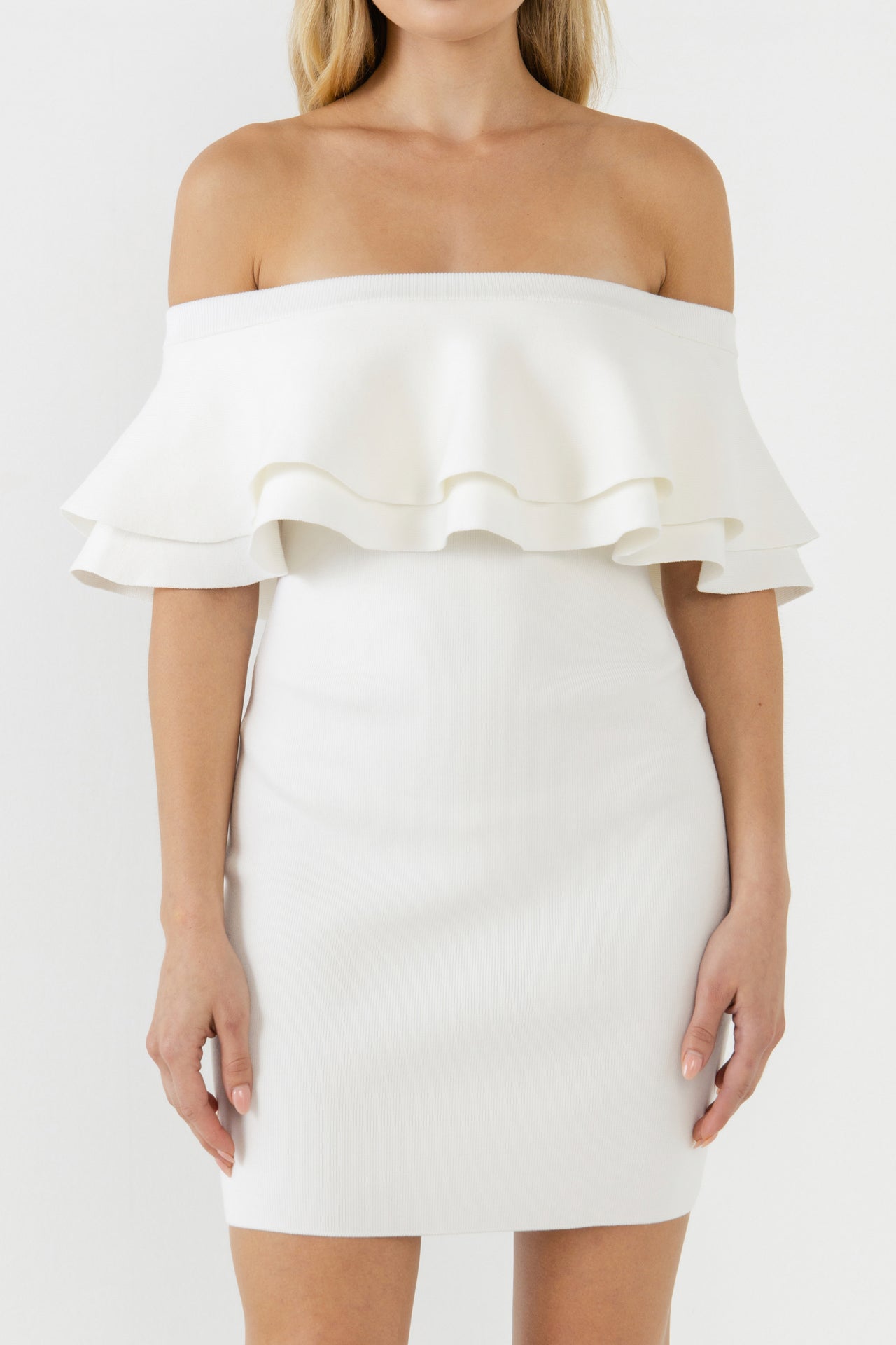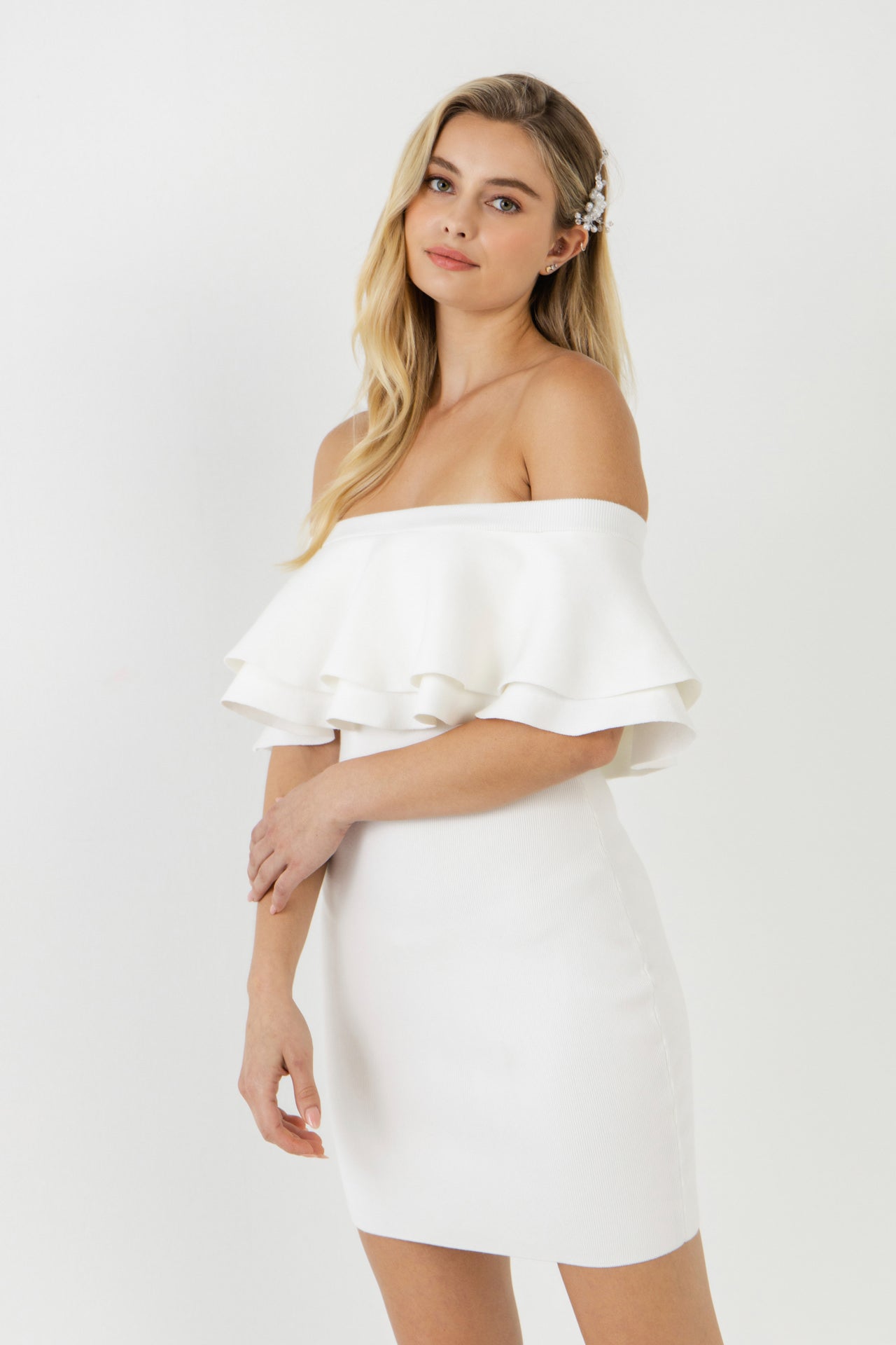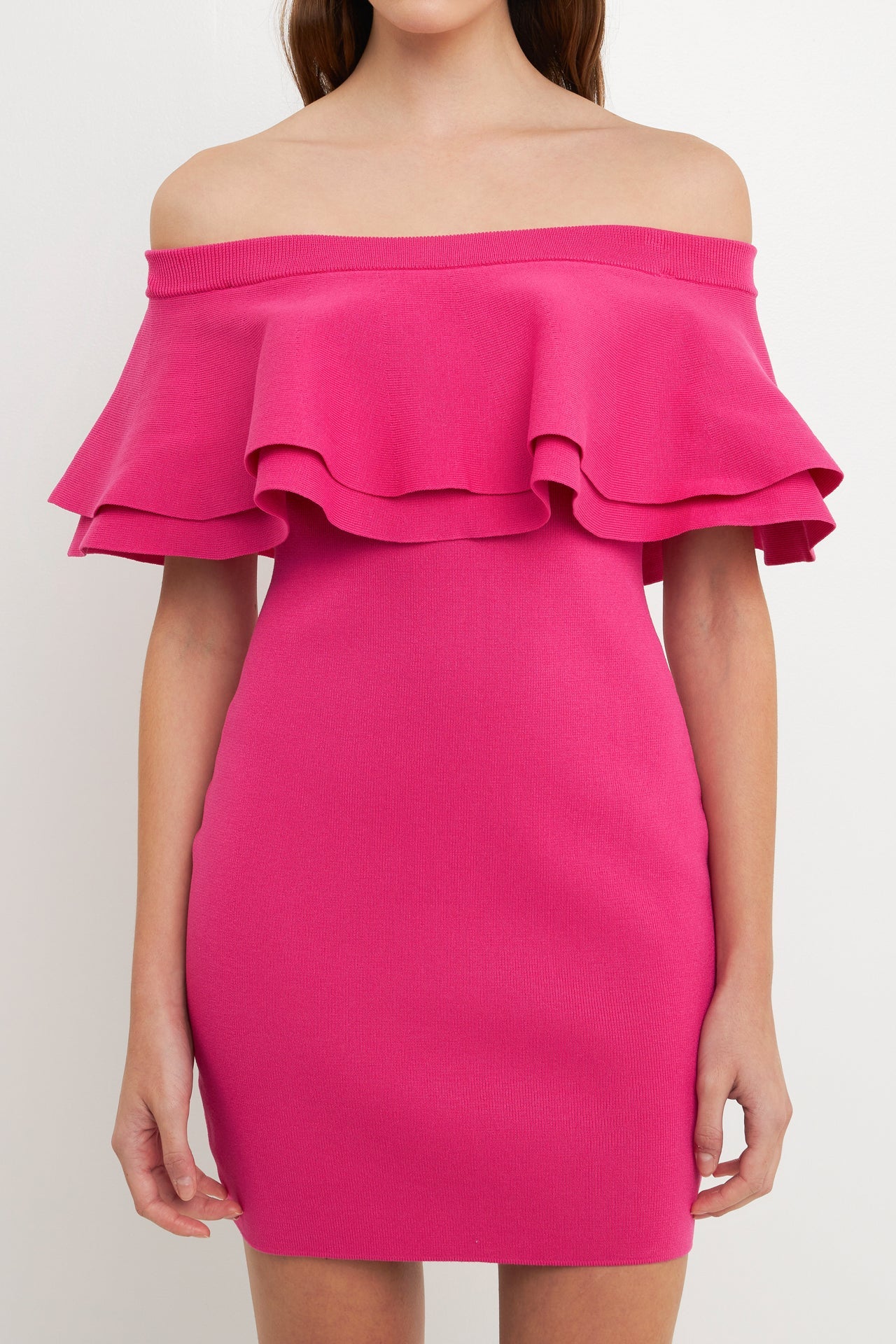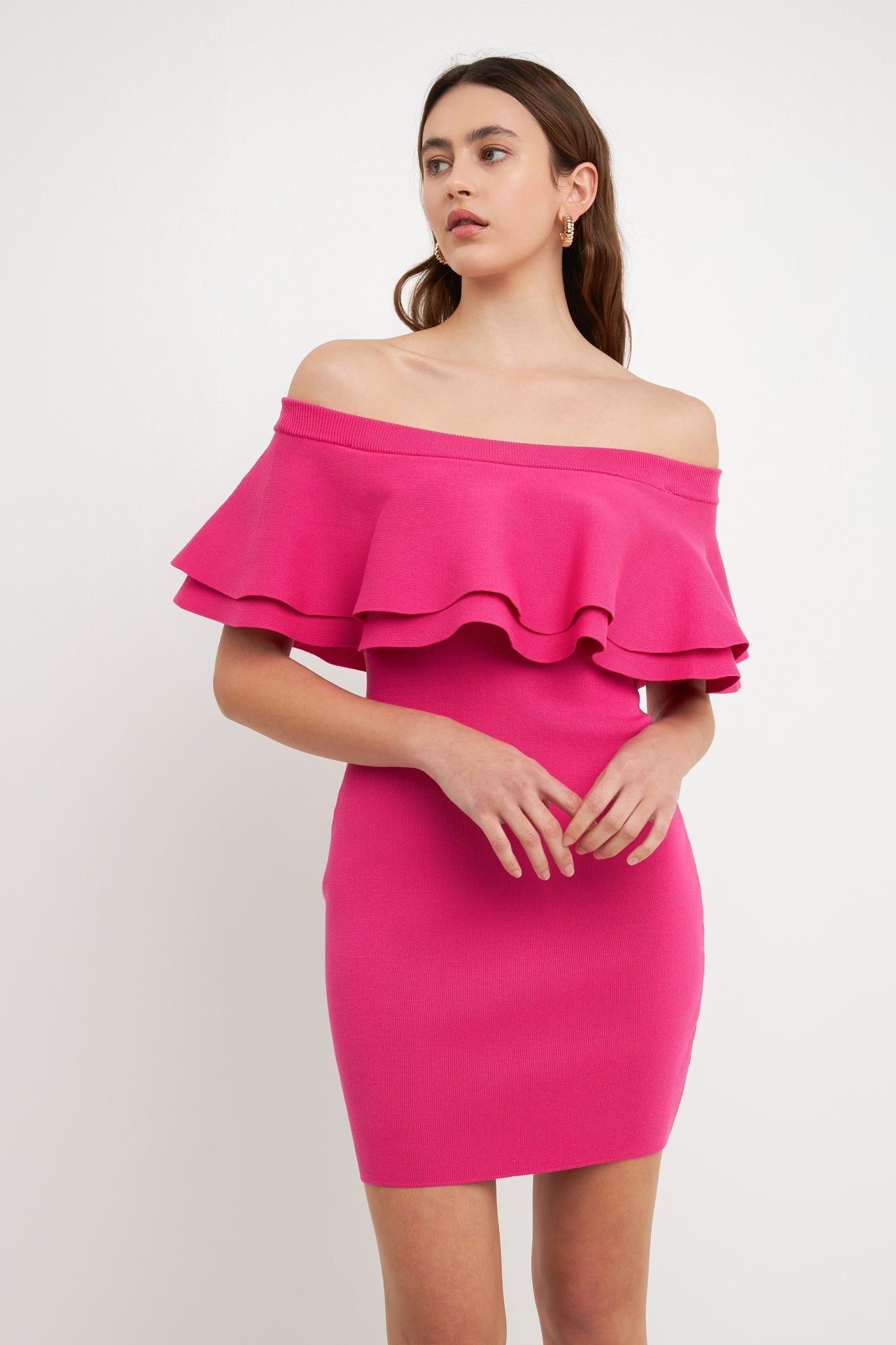 In this Off Shoulder Mini Dress, you'll look and feel amazing all night long. The 2 tiered ruffles and fitted silhouette hug your curves in all the right ways while the off the shoulder neckline is oh so flattering. Plus, the mini length is perfect for showing off your legs. Whether you're dancing the night away or sipping cocktails with friends, you'll turn heads in this dress.