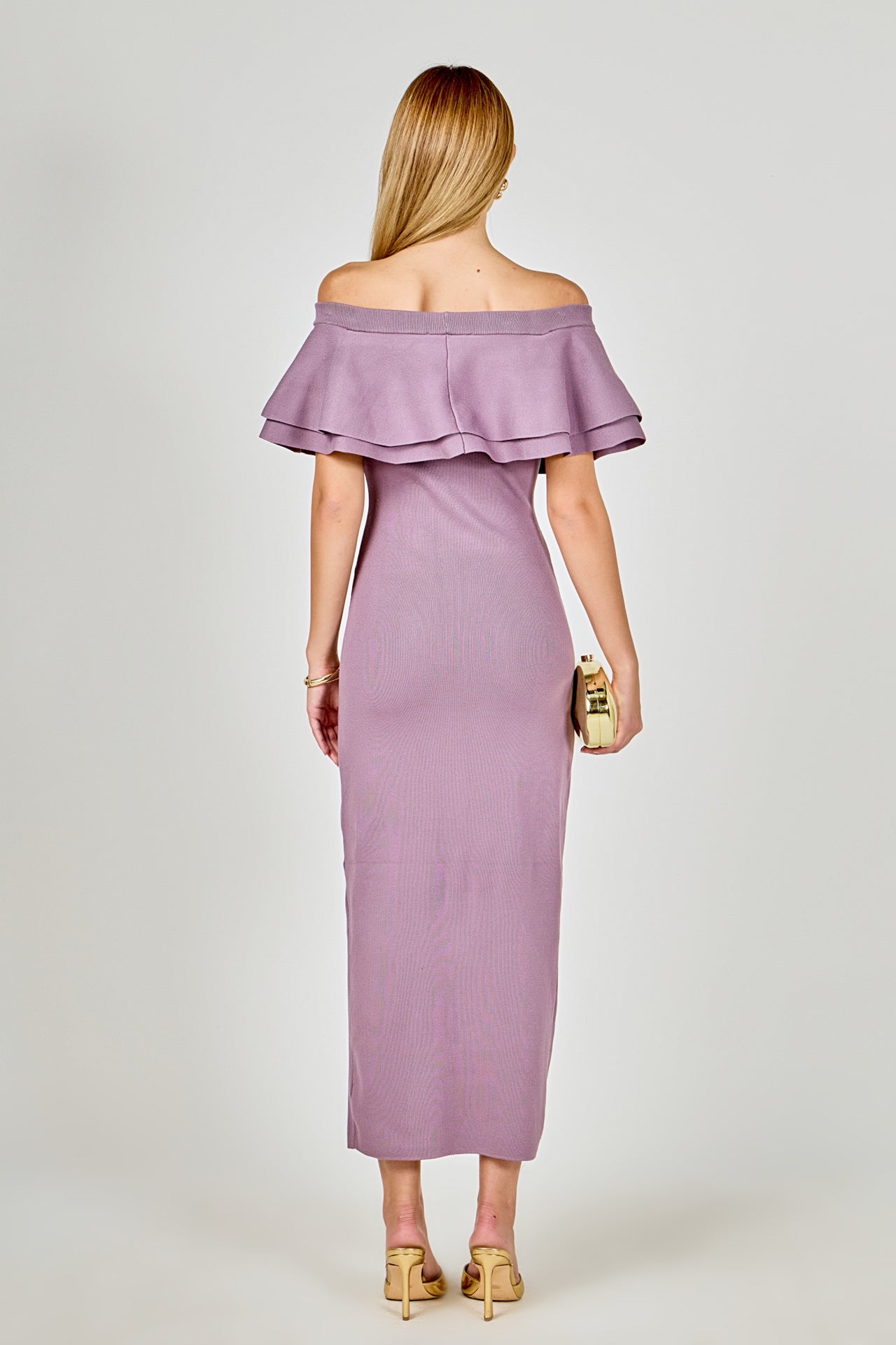 Elegant and effortless - this maxi dress has it all. With an off the shoulder neckline and pretty ruffle detail, this maxi dress is perfect for any special occasion. The leg slit detail adds a touch of drama, while the slim fit ensures you'll feel comfortable all night long. Wear this captivating maxi dress to your next wedding or formal event and watch as the compliments start pouring in.