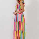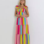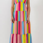 What's not to love about a summer dress that's both stylish and comfortable? This ombre stripe maxi dress is perfect for hot days, with a lightweight fabric and airy silhouette. The colorful print is sure to add a pop of personality to any outfit, while the maxi length provides plenty of coverage. Whether you're headed to the beach or out for dinner, this dress is sure to make a statement.