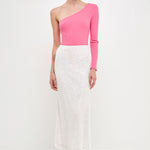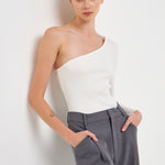 This bodysuit will have you feeling sexy and confident all day long! The one-shoulder design is a flirty and fun twist on a classic look, while the ribbed knit fabric makes it super comfortable to wear. Plus, the baby snap buttons make it easy to take on and off. Whether you're dressing it up or down, this bodysuit is sure to wow!
