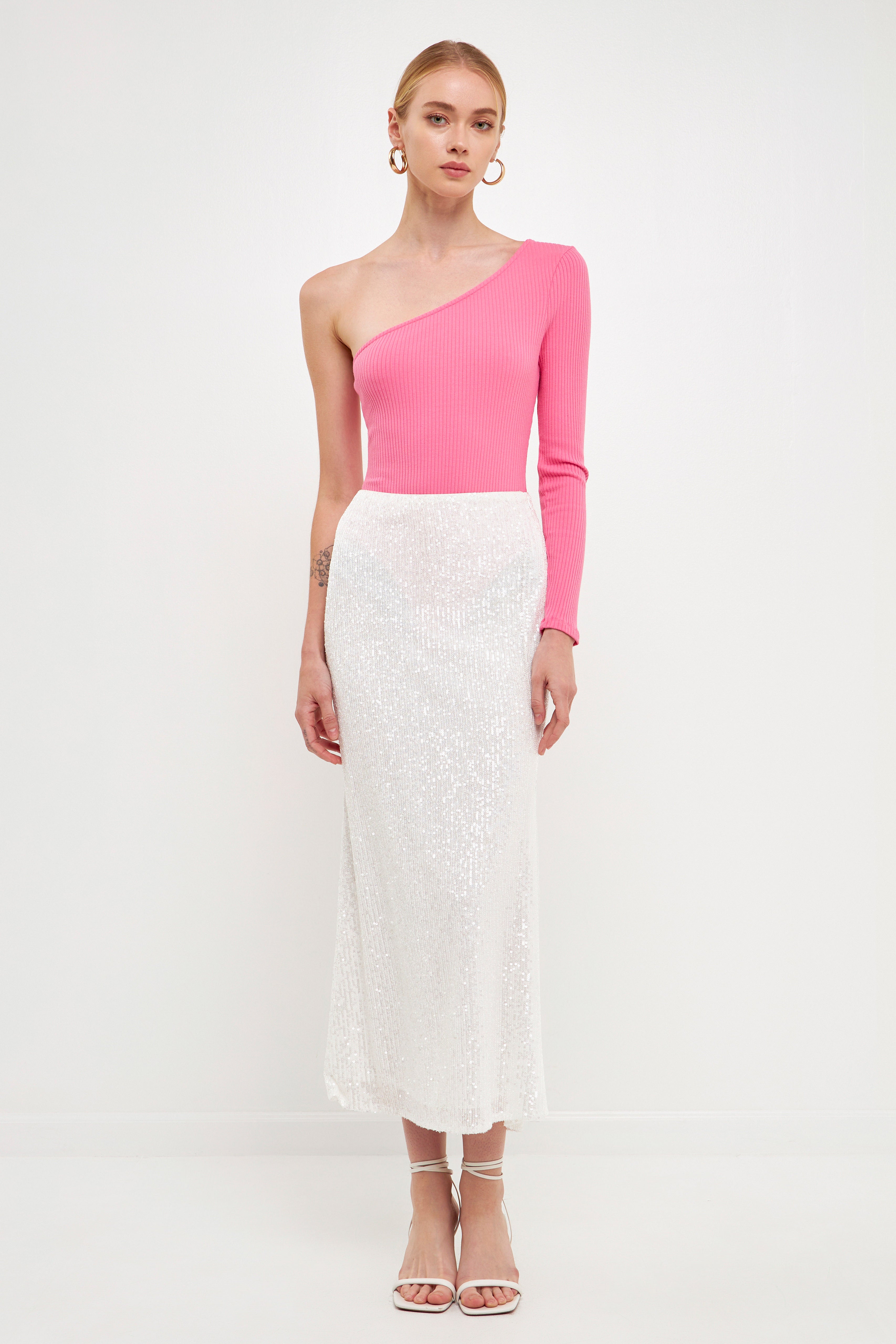 This bodysuit will have you feeling sexy and confident all day long! The one-shoulder design is a flirty and fun twist on a classic look, while the ribbed knit fabric makes it super comfortable to wear. Plus, the baby snap buttons make it easy to take on and off. Whether you're dressing it up or down, this bodysuit is sure to wow!