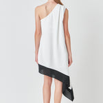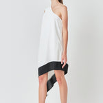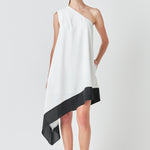 Flaunt a fashion-forward look with our one shoulder colorblock dress! The mini length elongates your legs while the asymmetrical waterfall hem adds a touch of drama. The one shoulder design exudes elegant and modern vibes perfect for any occasion. Stand out with the chic shoulder pintuck detail that elevates the overall look. Made with high-quality fabric this dress offers both style and comfort. Crafted for the confident and fashion-conscious woman this dress is a must-have in your wardrobe. Pair it with statement heels and accessories for a show-stopping ensemble. Shop now and be the center of attention!