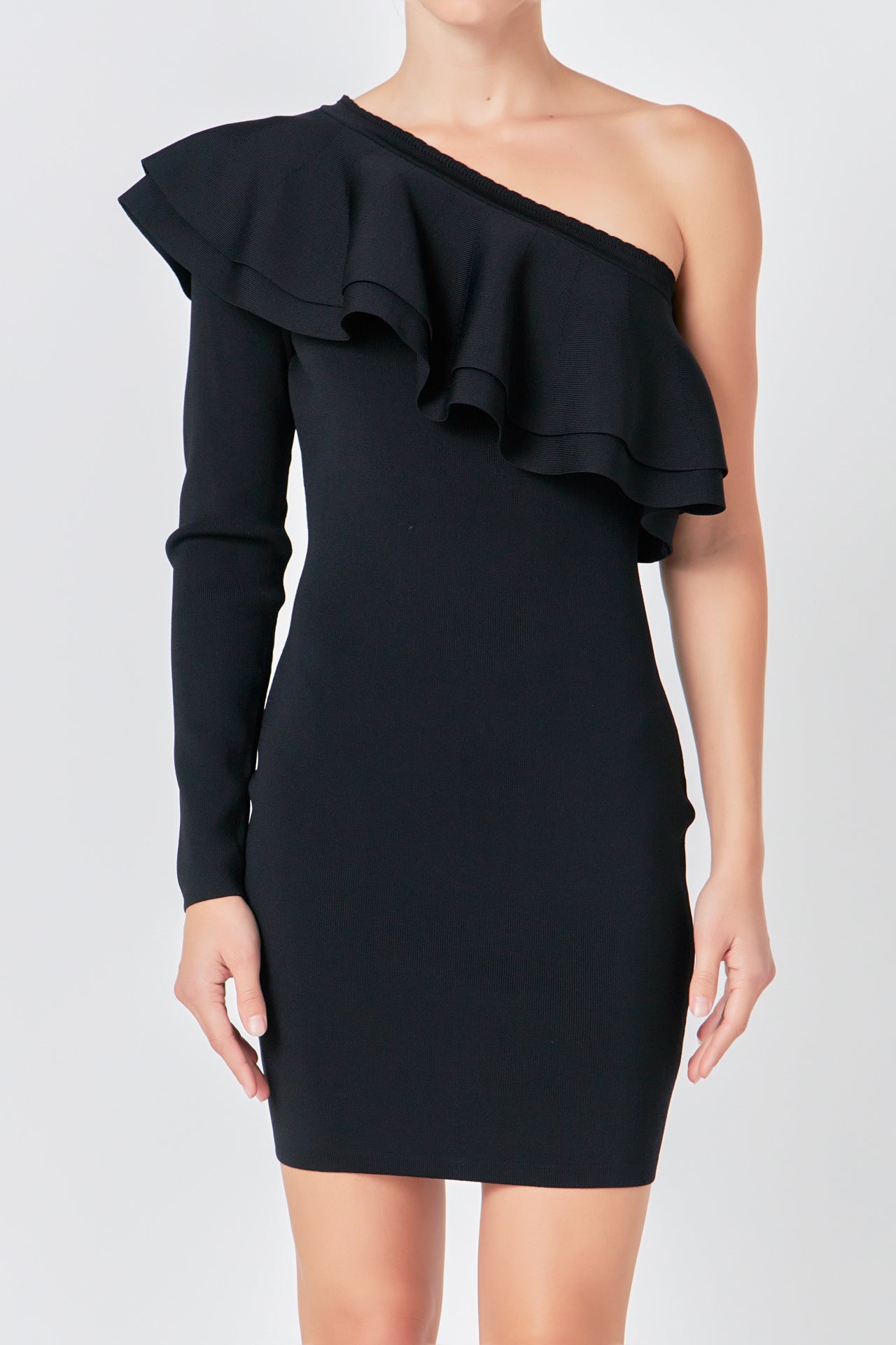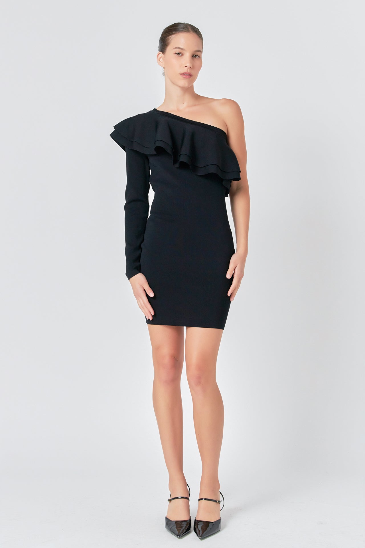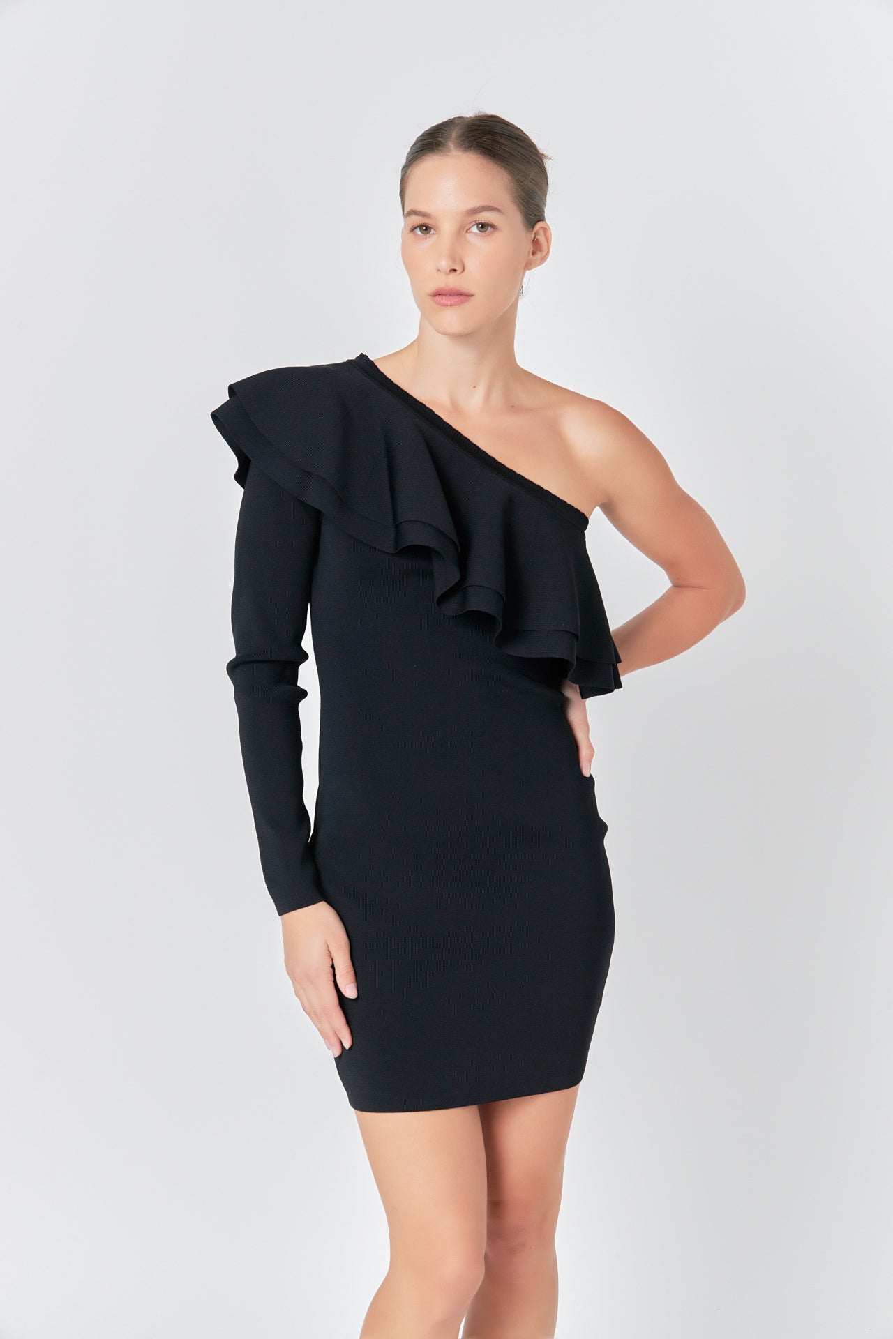 This One Shouldered Knitted Mini Dress is perfect for making a statement! Crafted with high quality knitted fabric, this fitted mini dress features an asymmetrical neckline and a gorgeous ruffle detail to complete the look. Its unique design and flattering cut will give you a stylish look you won't forget. Show off your fashion sense with this amazing mini dress and be the envy of the party!