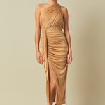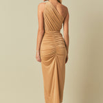 This gorgeous one shoulder maxi dress is sure to turn heads. Crafted from a lightweight fabrication with a figure-flattering ruching design this stunning maxi dress has an asymmetrical neckline with an alluring one shoulder silhouette. The side zipper closure ensures easy wearability when you need a graceful look that still feels comfortable. The unique style of this fabulous maxi dress is sure to make a statement while the maxi length delivers a touch of elegant sophistication.