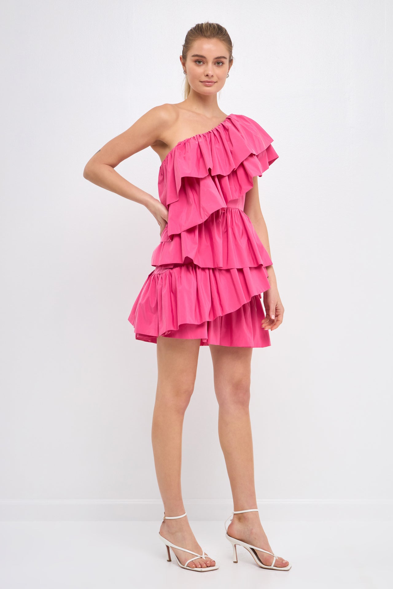 This summer dress is sure to turn heads with its flirty ruffles and one shoulder design. It's perfect for hot weather, whether you're out on a date or enjoying a day by the pool. So throw on some shades and strut your stuff in this sexy little number!