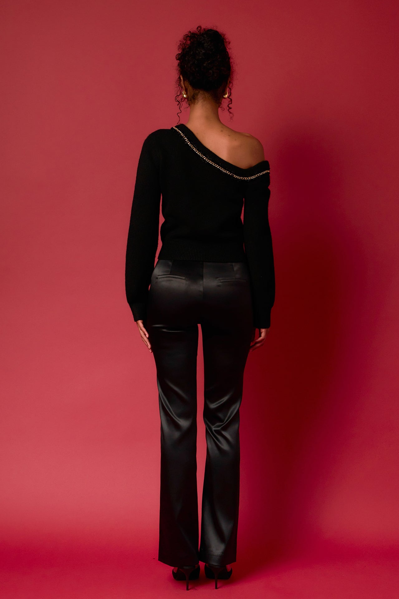 This stylish One Shoulder Top is perfect for any occasion. It features long sleeves and ribbed fabric for a comfortable yet chic look. The silver neckline chain detail adds a subtle touch of glamour. This versatile top is the perfect way to make a statement while making you look your best - whether you're wearing it for a night out or a day about town.