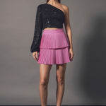 One Sleeve Sequin Top is the perfect top to throw on when you have a fun or special occasion to attend. Style this top with your favorite trousers or mini skirt and you're ready to party the night away! The mini sequins add the perfect amount of glamour to this top and the side zipper will make sure the top fits you snug, yet comfortably.
