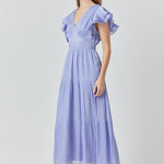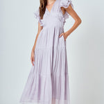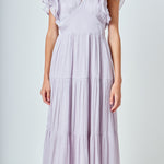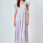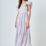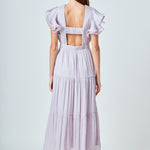 This Open-Back Maxi-Dress has an elegant v-neck and playful ruffled sleeves. Crafted from luxurious sheen crinkle fabric it's designed to make a lasting impression. The maxi length is perfect for any occasion from an outdoor lunch to a romantic evening. An open back adds a bit of drama. Look your best with this gorgeous dress and show off your unique sense of style!