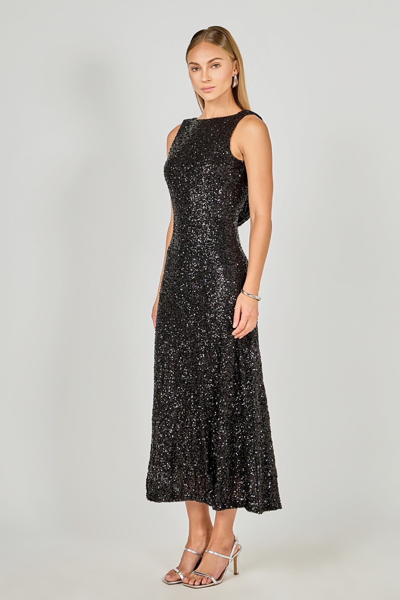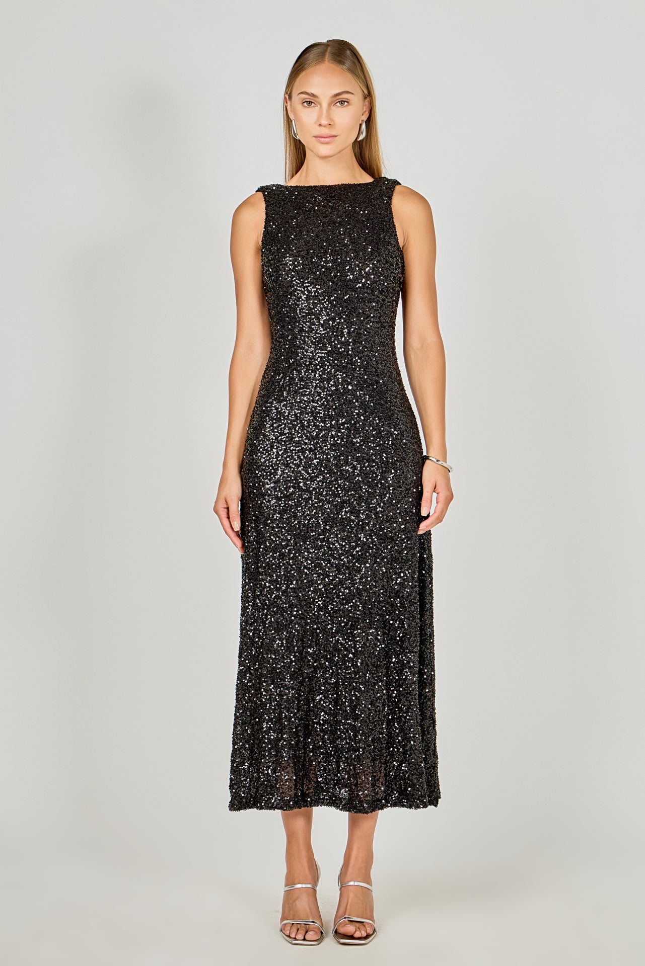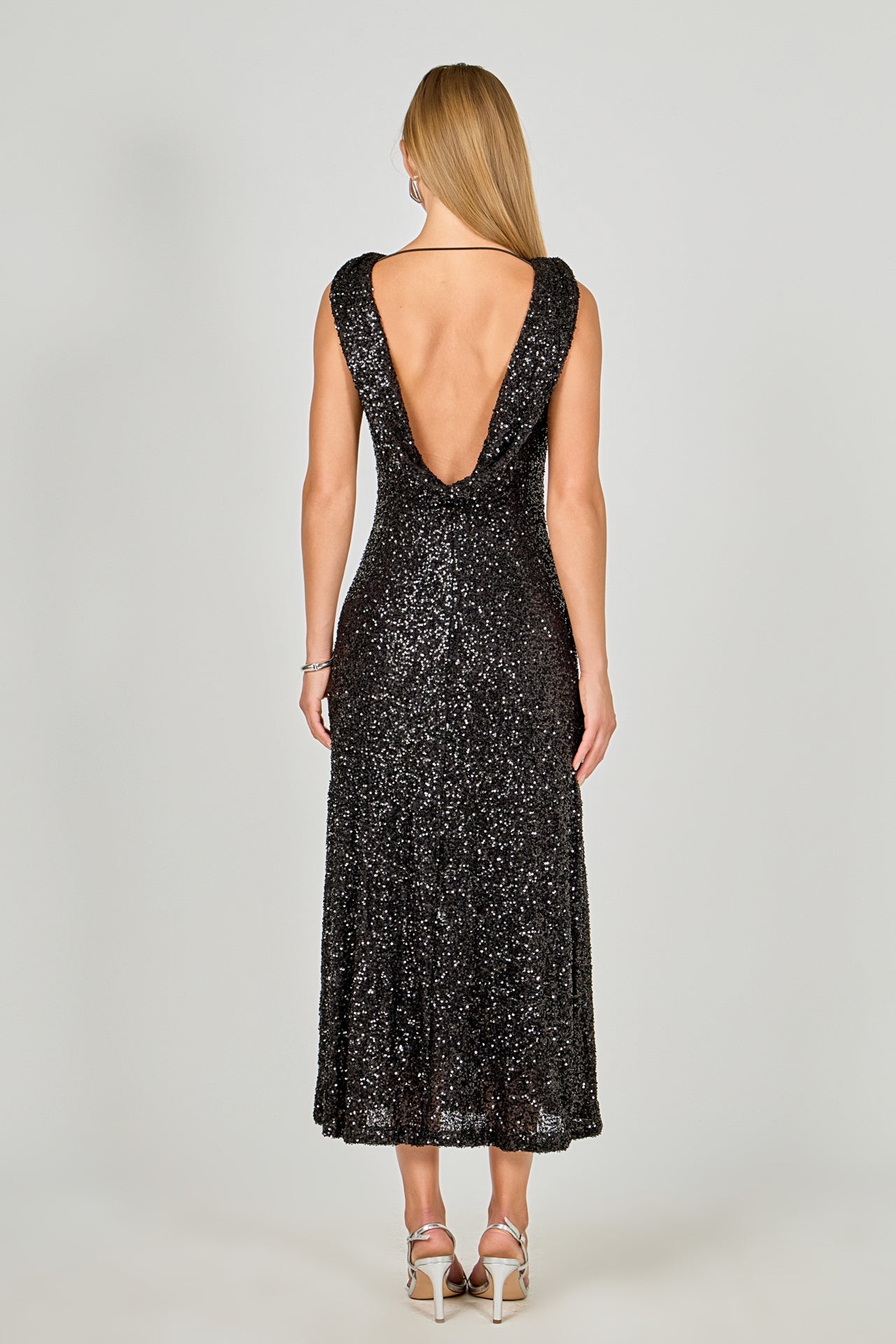 Open Back Sleeveless Sequins Maxi Dress