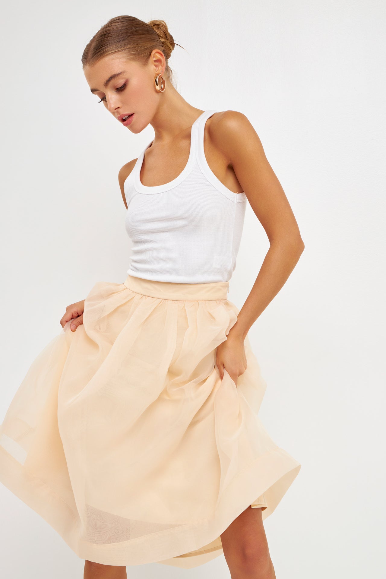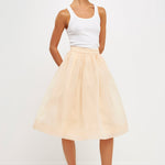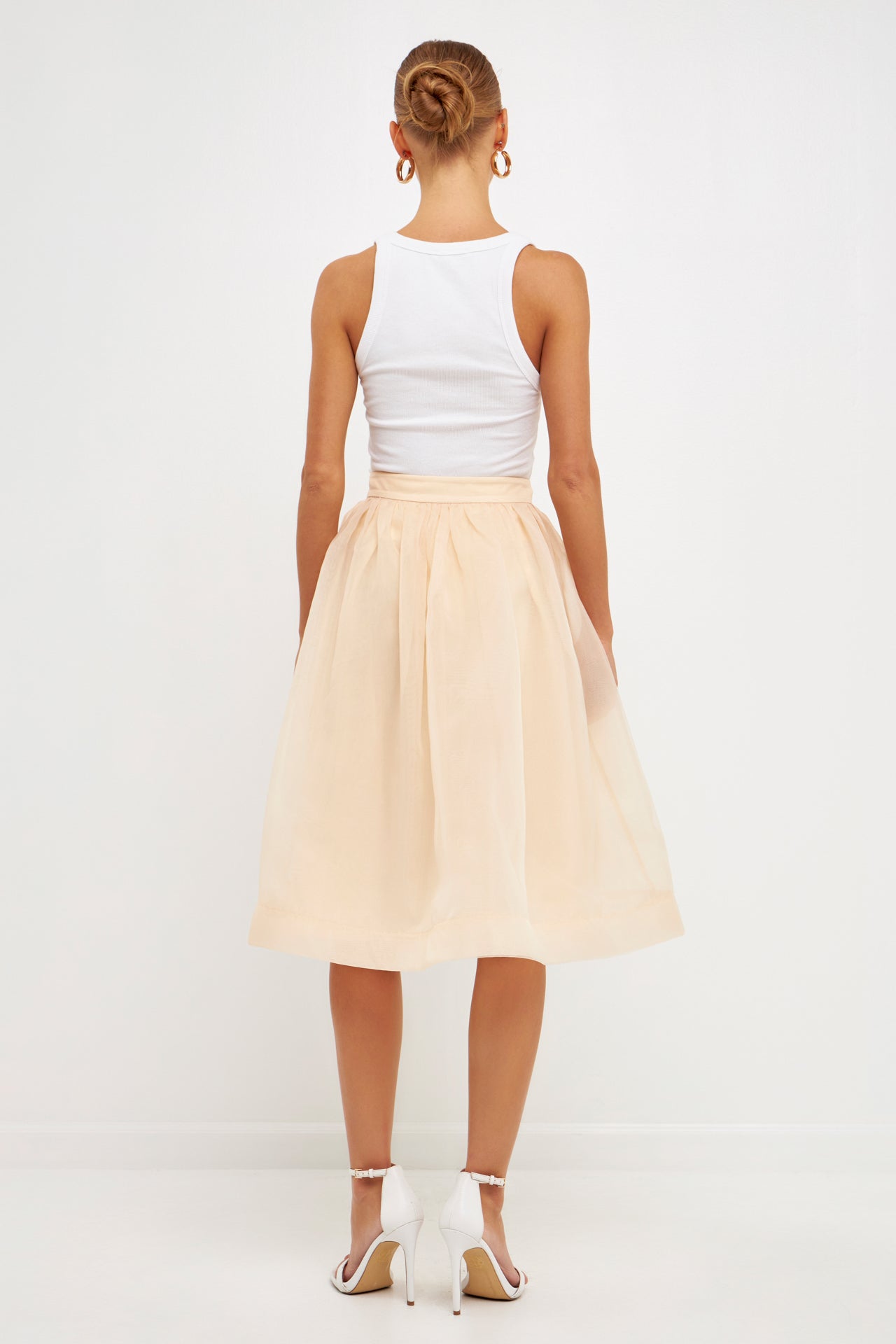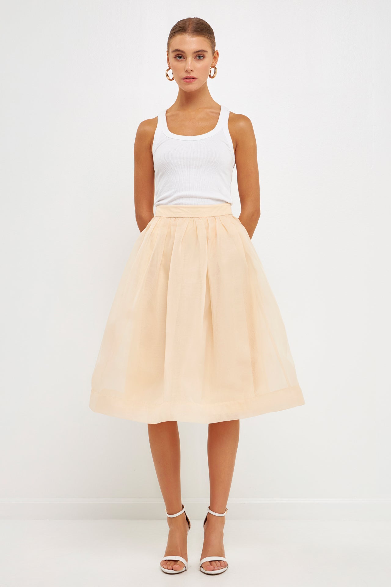 This Organza A Line Midi Skirt features a full skirt and waist band to flatter your figure. Crafted with a luxurious organza fabric the midi length provides a timeless look suitable for any occasion. Enjoy a stylish look with this timeless skirt.