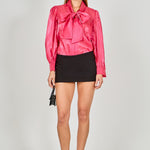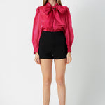 This stunning Organza Blouse Top is perfect for special occasions! Crafted from lightweight organza fabric it features a loose fit an elegant neck bow tie and quarter blouson sleeves - a fashionable look with a unique style. Whether for the office a night out or a formal event you're sure to look and feel amazing in this gorgeous Organza Blouse Top. Buy now to upgrade your wardrobe!