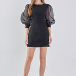 This Organza Blouson Mini Dress is the perfect addition to your wardrobe! Beautifully crafted from a mix of organza and other materials it features a boat neckline fitted bodice and mini length. Show off your legs and make a statement in this head-turning dress. It is sure to leave a lasting impression with its unique design and its exquisite materials will ensure you look stunning all night long. Make it yours today!