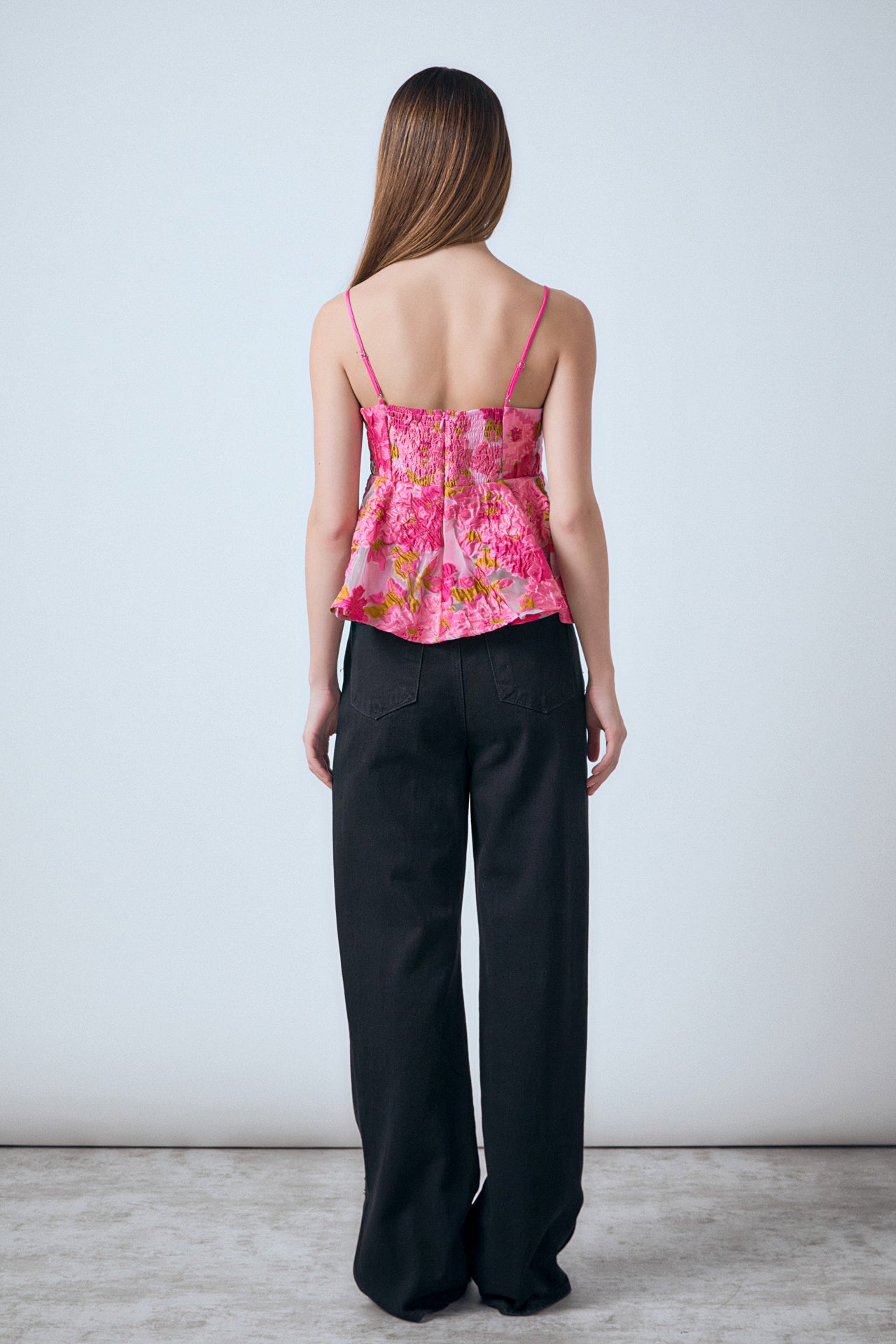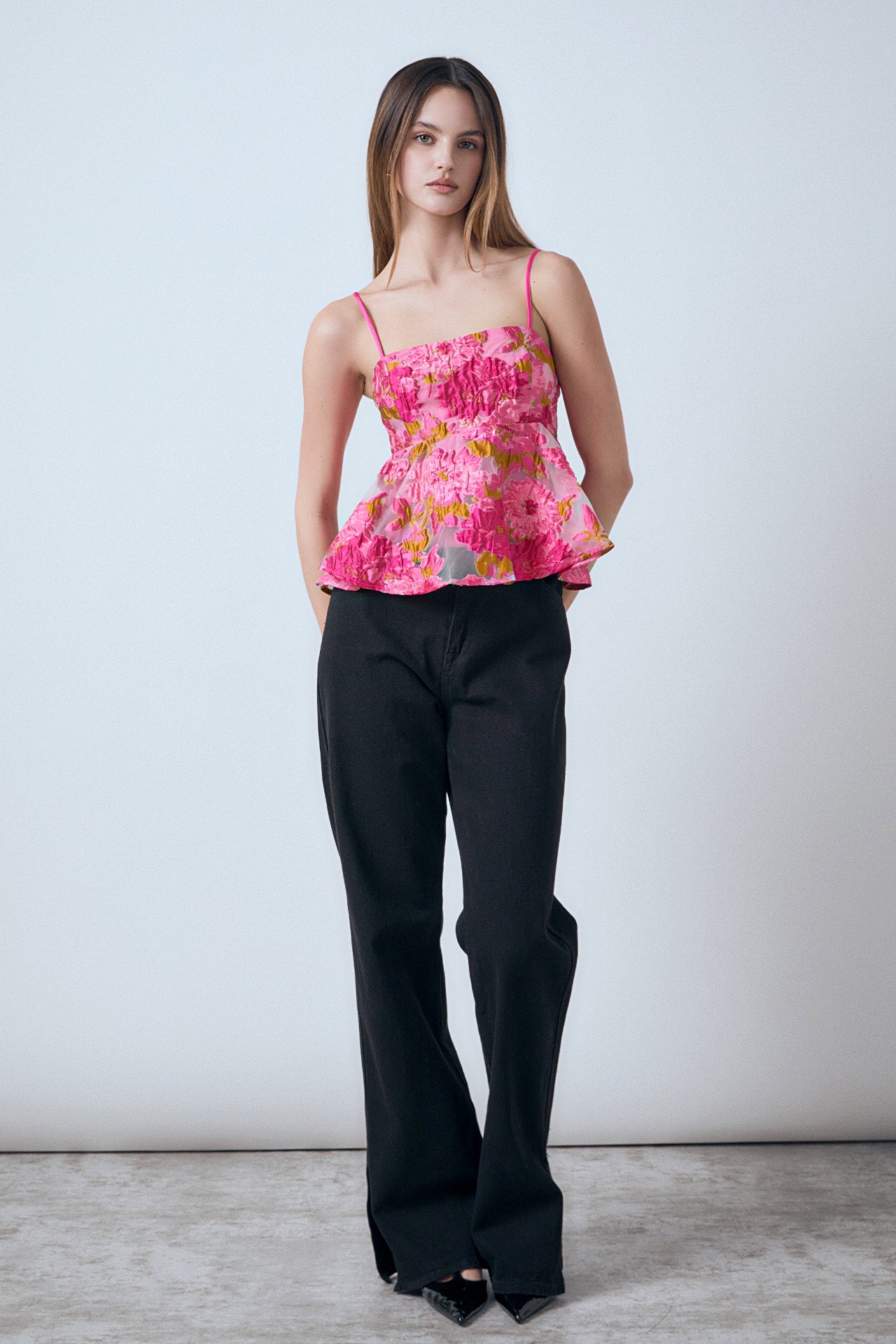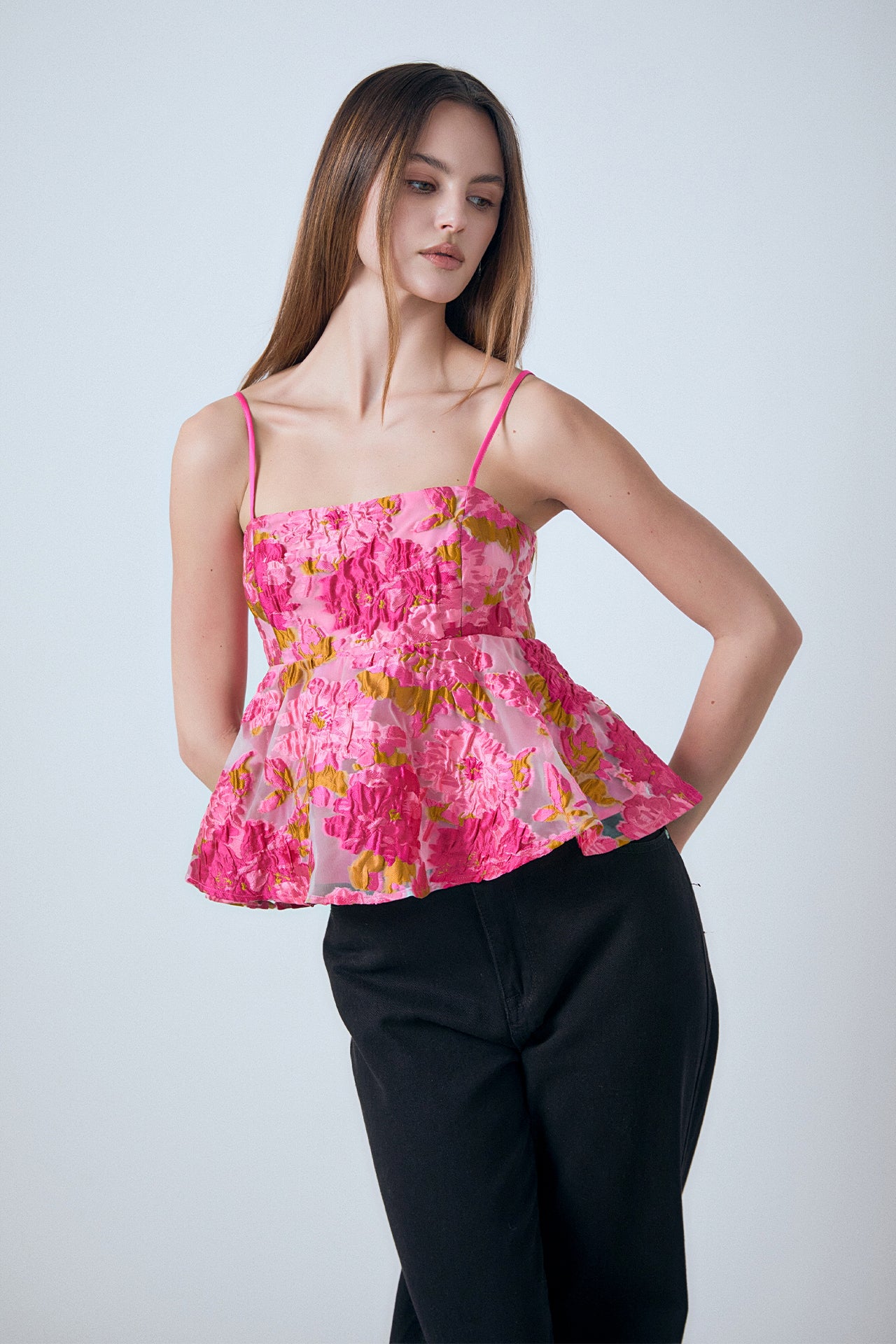 Introducing our stunning Organza Floral Top the perfect addition to your wardrobe. Crafted from high-quality floral jacquard fabric this top features a flattering blouson sleeve and a side zipper for easy wear. The delicate organza adds a touch of elegance while the lining ensures comfort and coverage. Perfect for any occasion this top is a must-have for every fashion-forward individual. Don't miss out on this one-of-a-kind piece that will turn heads. Shop now and get ready to stand out in style.