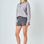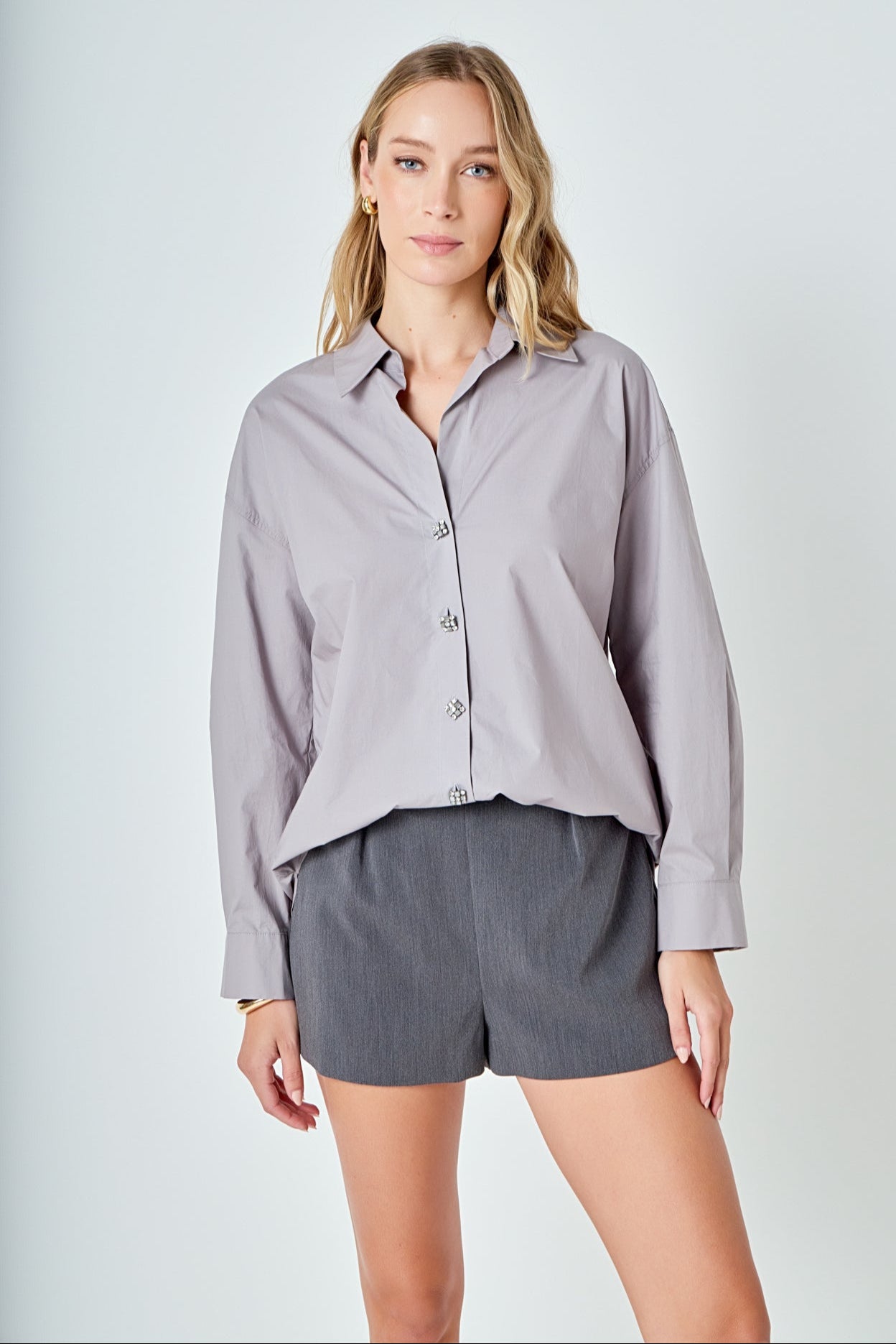 Introducing our Oversize Button Collared Shirt a stylish way to add a fashionable touch to any look. Featuring a collared neckline drop shoulder construction and pleat detail on the sleeves for a truly unique look. The long sleeves button cuffs make the perfect add to the overall design. Perfect for day or night this oversize shirt offers a fashionable twist on everyday dressing. Shop our stylish flattering and comfortable shirt today - you won't be disappointed.