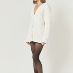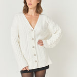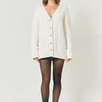 Upgrade your sweater game with our Oversized Cable Knit Cardigan. Made with high quality materials, this cardigan is perfect for keeping you cozy and stylish during the colder months. The oversized fit is both on-trend and comfortable, while the long sleeves provide extra warmth. The front buttoned closure adds a touch of sophistication, and the ribbed design adds texture and interest. Perfect for layering over any outfit, this cardigan is a must-have for your fall and winter wardrobe. Get yours now and stay warm in style.