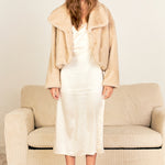 Stay warm and stylish with our must-have Oversized Collar Faux Fur Jacket. The oversized fit is both trendy and comfortable, making it perfect for any occasion. The classic collared design adds a touch of sophistication, while the hidden snap buttons closure ensures a sleek and polished look. With convenient front pockets, you'll have plenty of space to store your essentials. This jacket is the perfect combination of fashion and functionality. A must-have for your winter wardrobe.