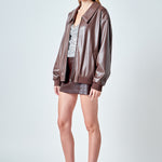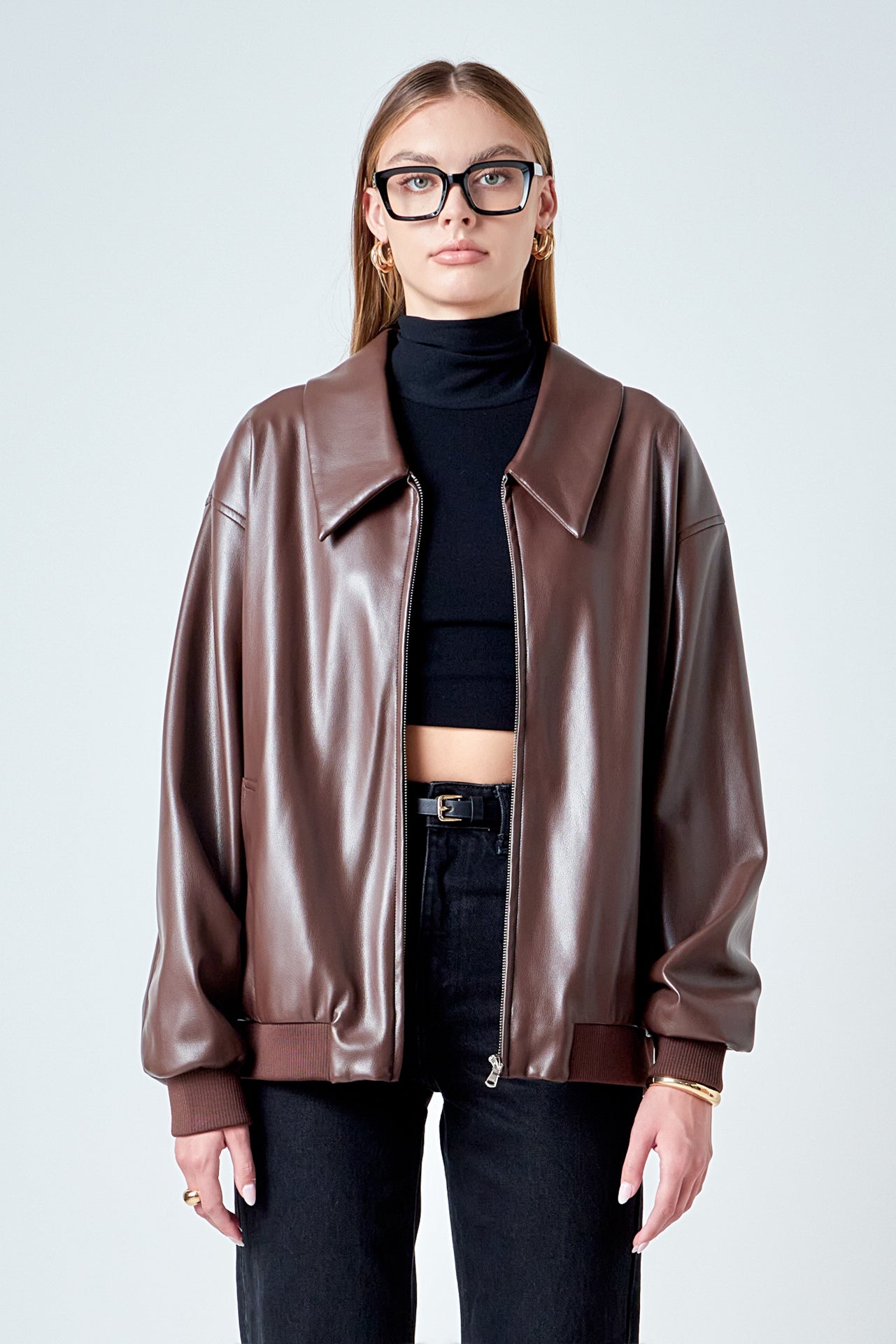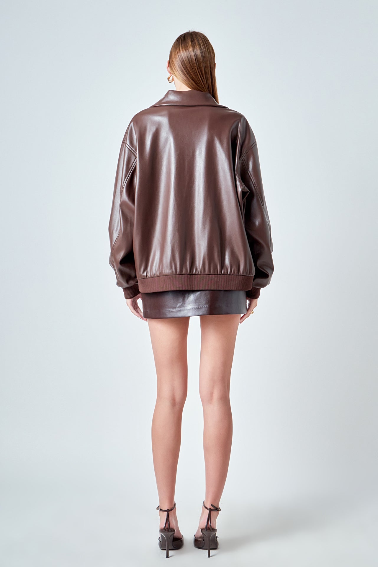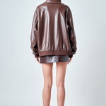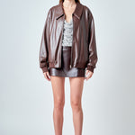 Get ready to rock this season with our must-have Oversized Faux Leather Jacket. This jacket is the perfect mix of edgy and chic, thanks to its oversized fit, front zipper closure, ribbed details, and front pockets. Crafted from high-quality faux leather, it's the ultimate statement piece to elevate any outfit. From brunch to date night, this jacket has got you covered. Don't wait any longer, grab yours now and make a bold fashion statement.