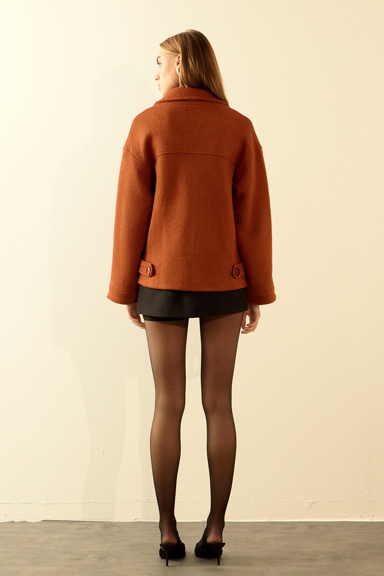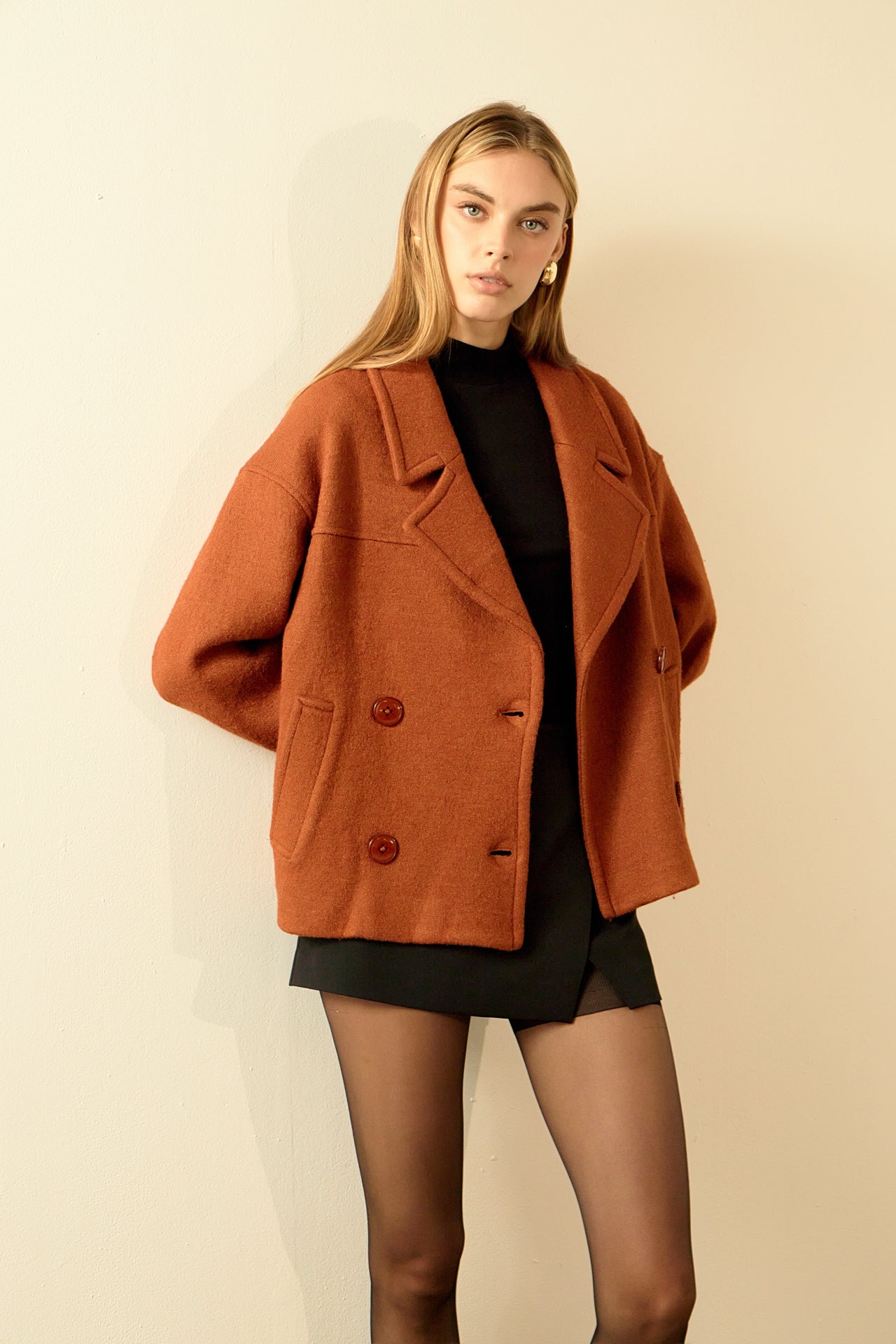 Our Oversized Short Coat is an essential for your wardrobe. With a double-breasted closure, big collar and lapel, and short length, this oversized jacket will keep you warm while turning heads. Crafted from the finest materials and featuring a modern cut, this coat is perfect for every occasion. Step out in unique and effortless style with our Oversized Short Coat. Ideal for fashion-forward individuals who appreciate functionality and quality.