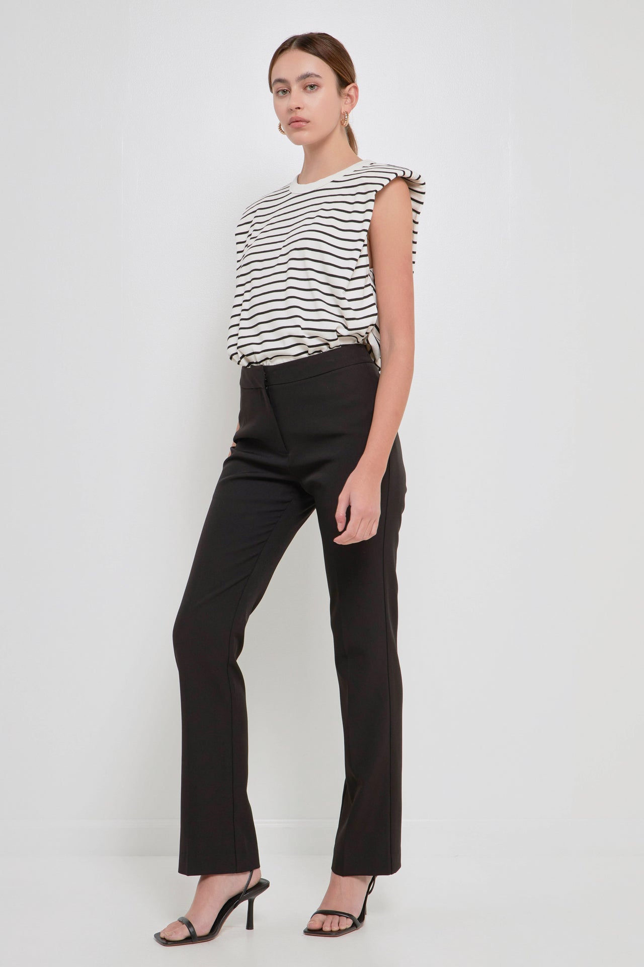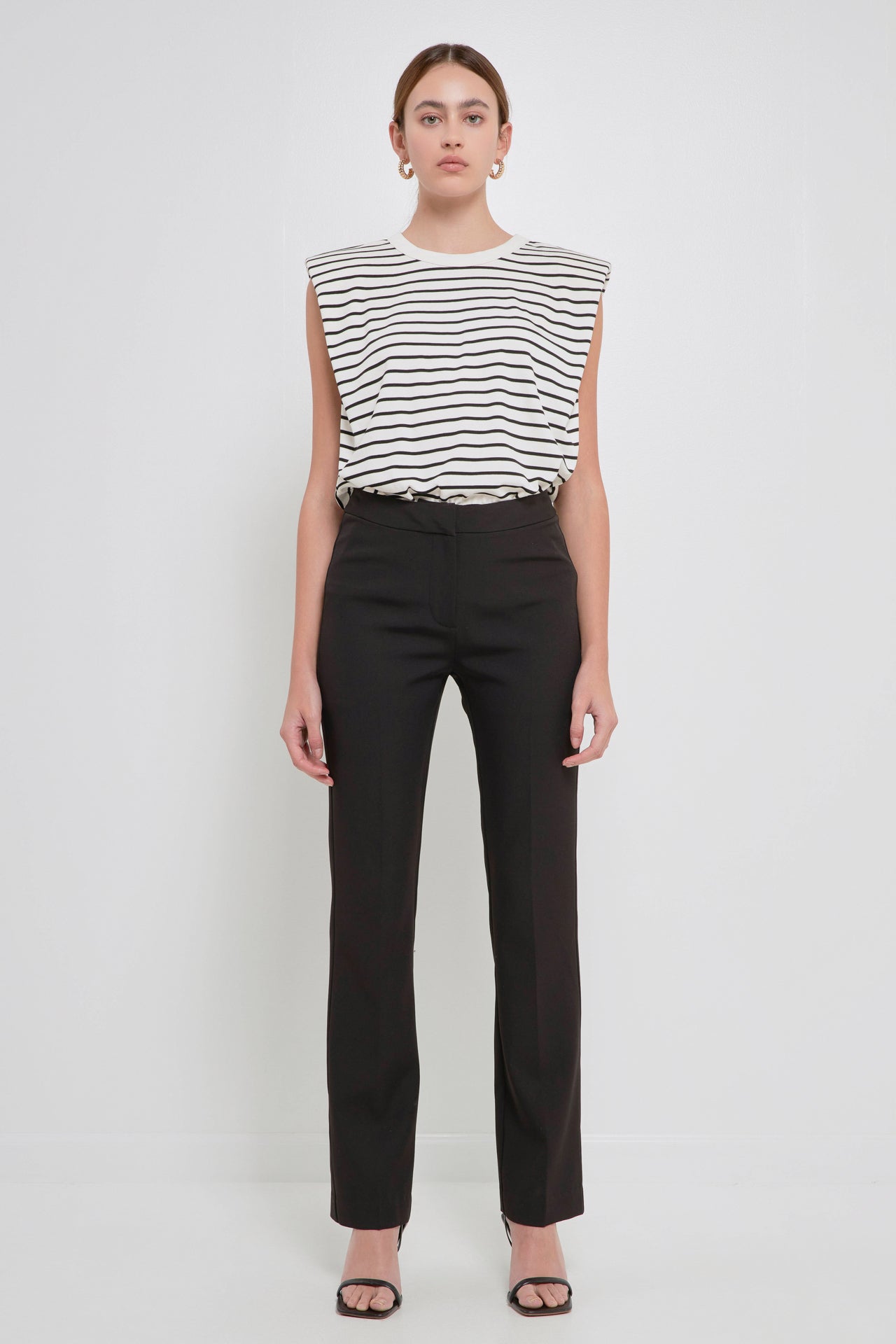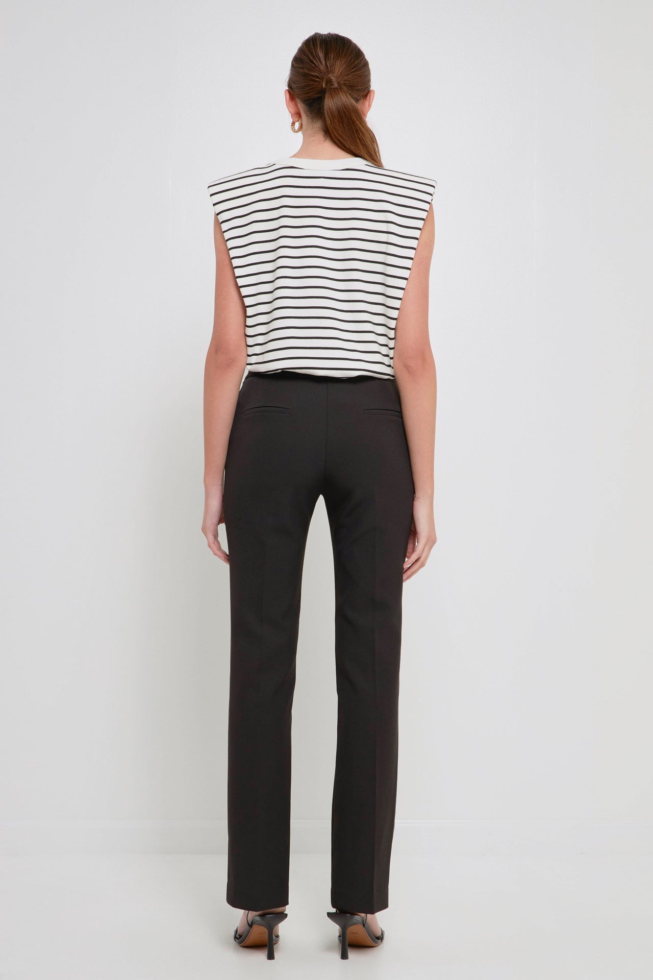 TAUPE / WHITE BLACK STRIPE / BLACK: Height 5'9" / Bust 30.5" / Waist 24" / Hips 34.5"