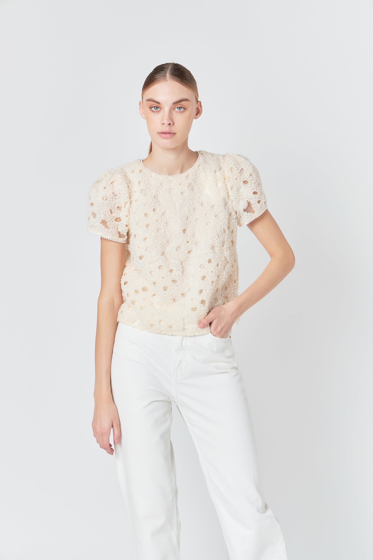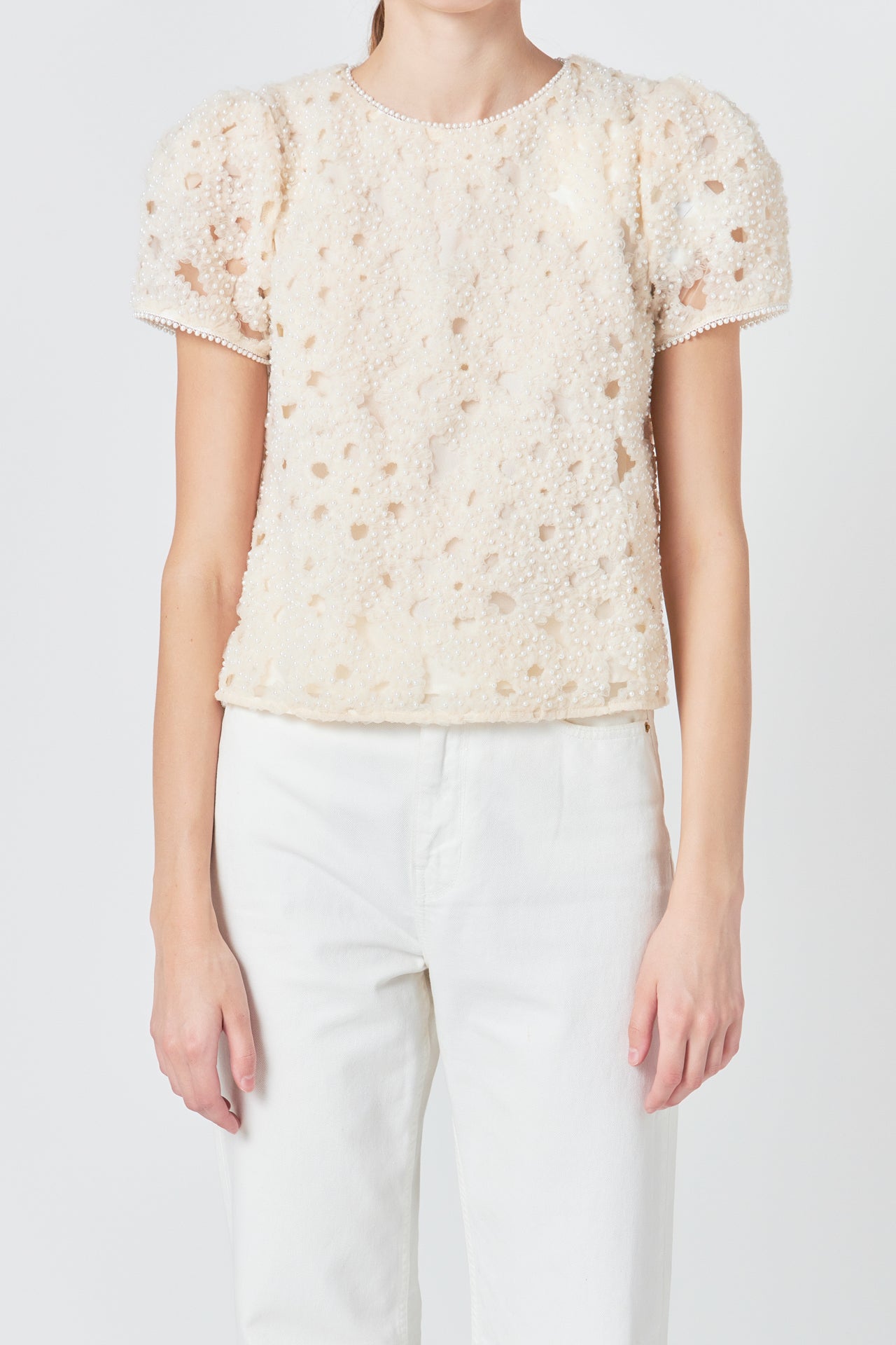 Pearl and Tulle Textured Top