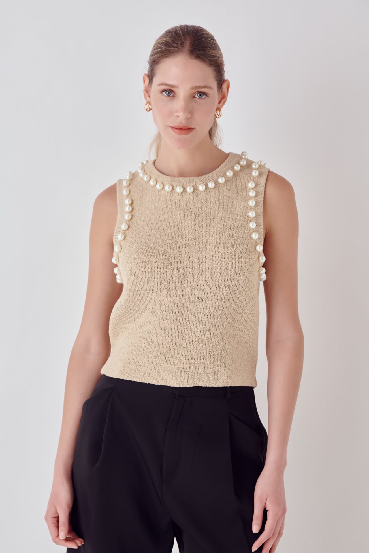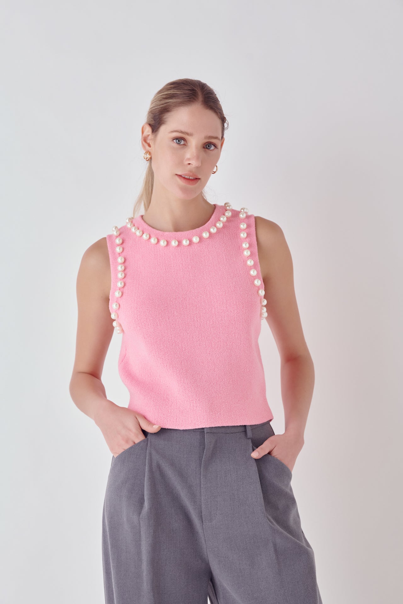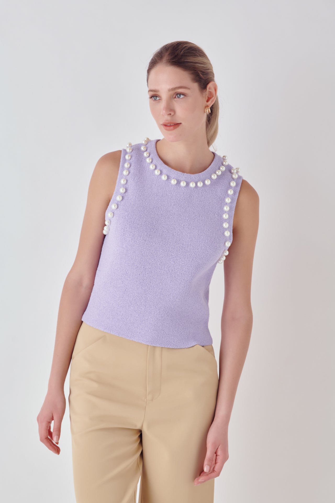 This Pearl Detail Knit Tank Top is the perfect way to stay in style while keeping up with fashion trends. Featuring a round neckline sleeveless design and back neck keyhole closure this top is sure to turn heads. Complimented with pearl trim detail this top is perfect for an everyday outing or a night out on the town. Get a perfect style today with this unique fashionable tank top!