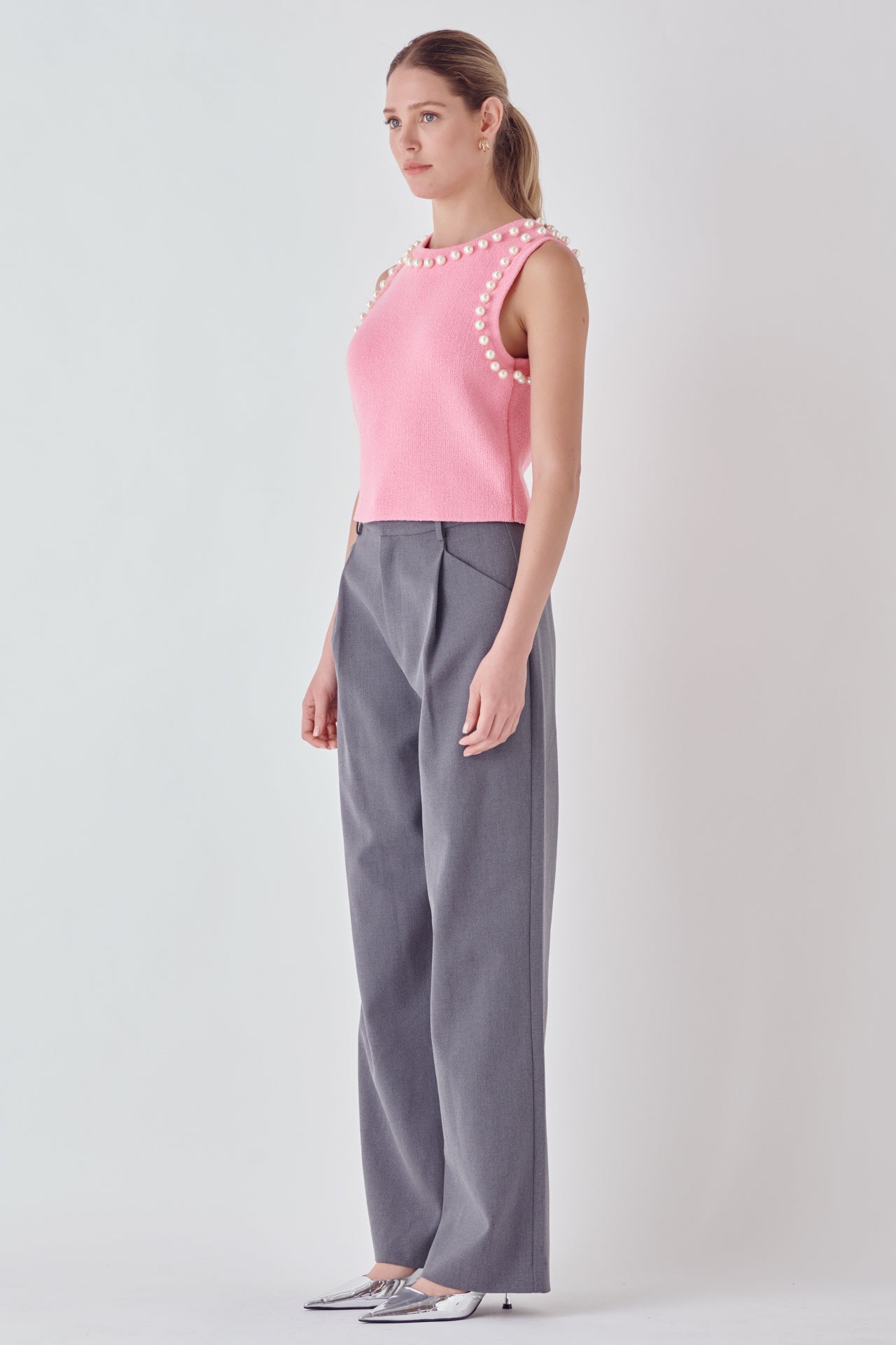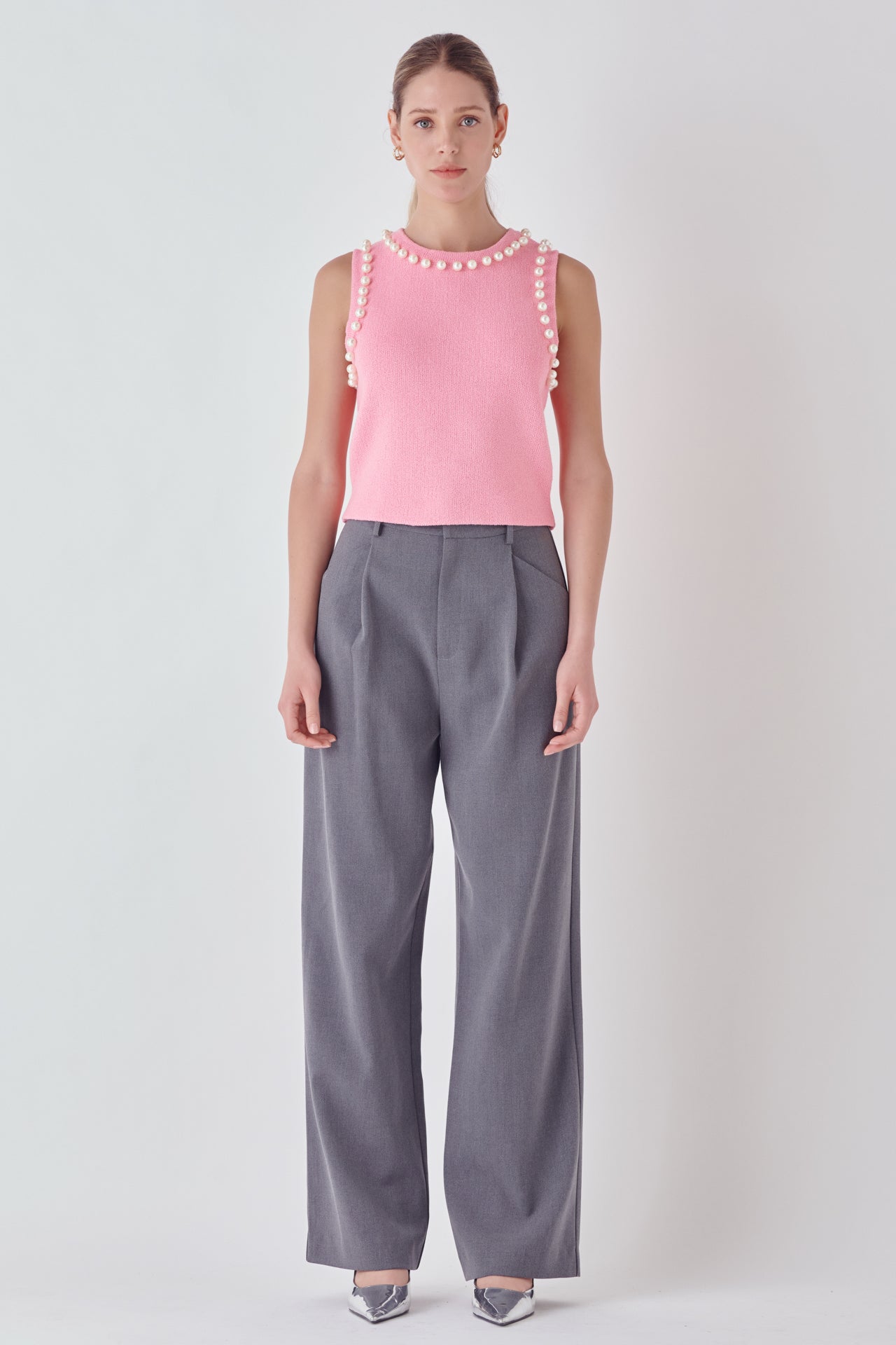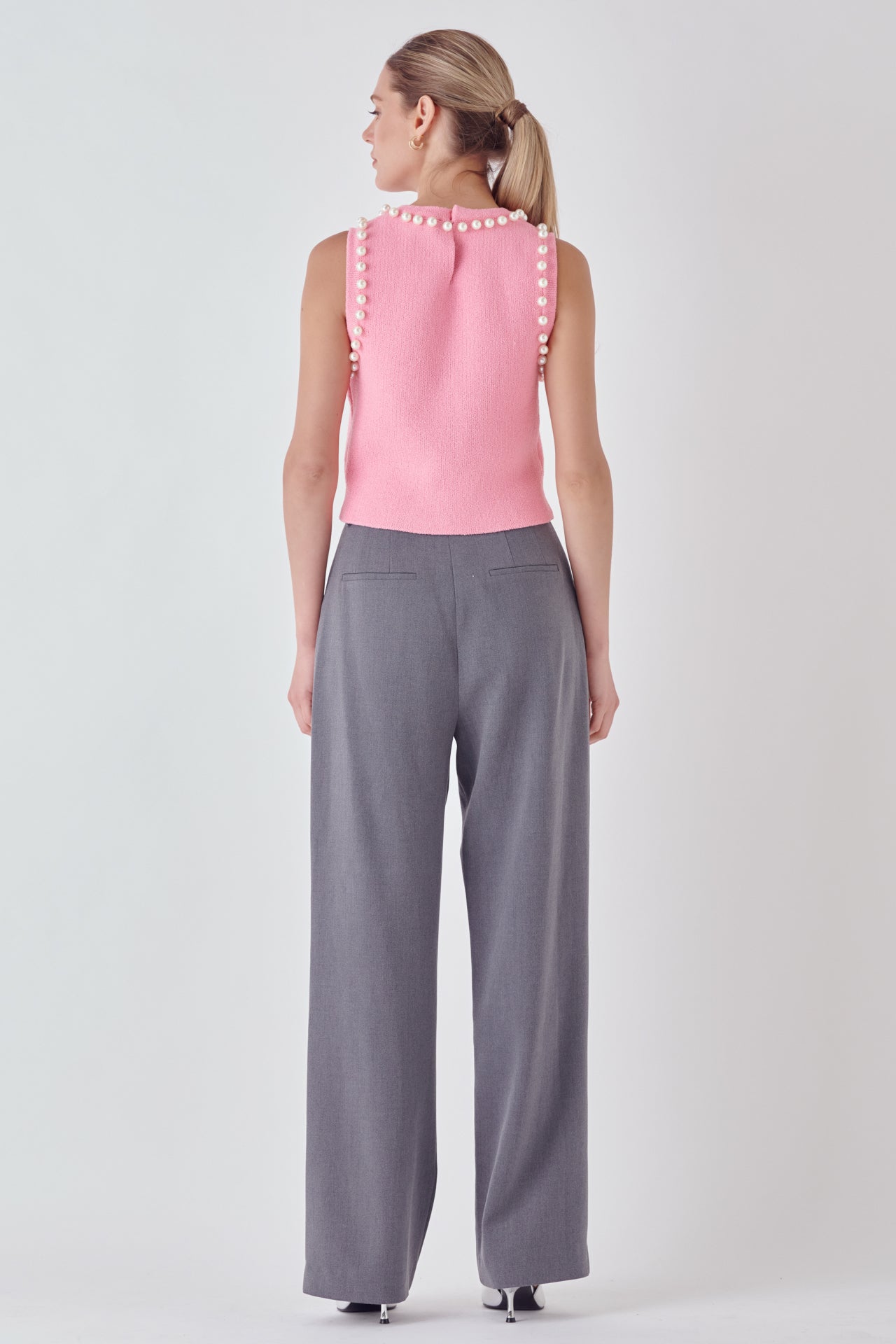 This Pearl Detail Knit Tank Top is the perfect way to stay in style while keeping up with fashion trends. Featuring a round neckline sleeveless design and back neck keyhole closure this top is sure to turn heads. Complimented with pearl trim detail this top is perfect for an everyday outing or a night out on the town. Get a perfect style today with this unique fashionable tank top!