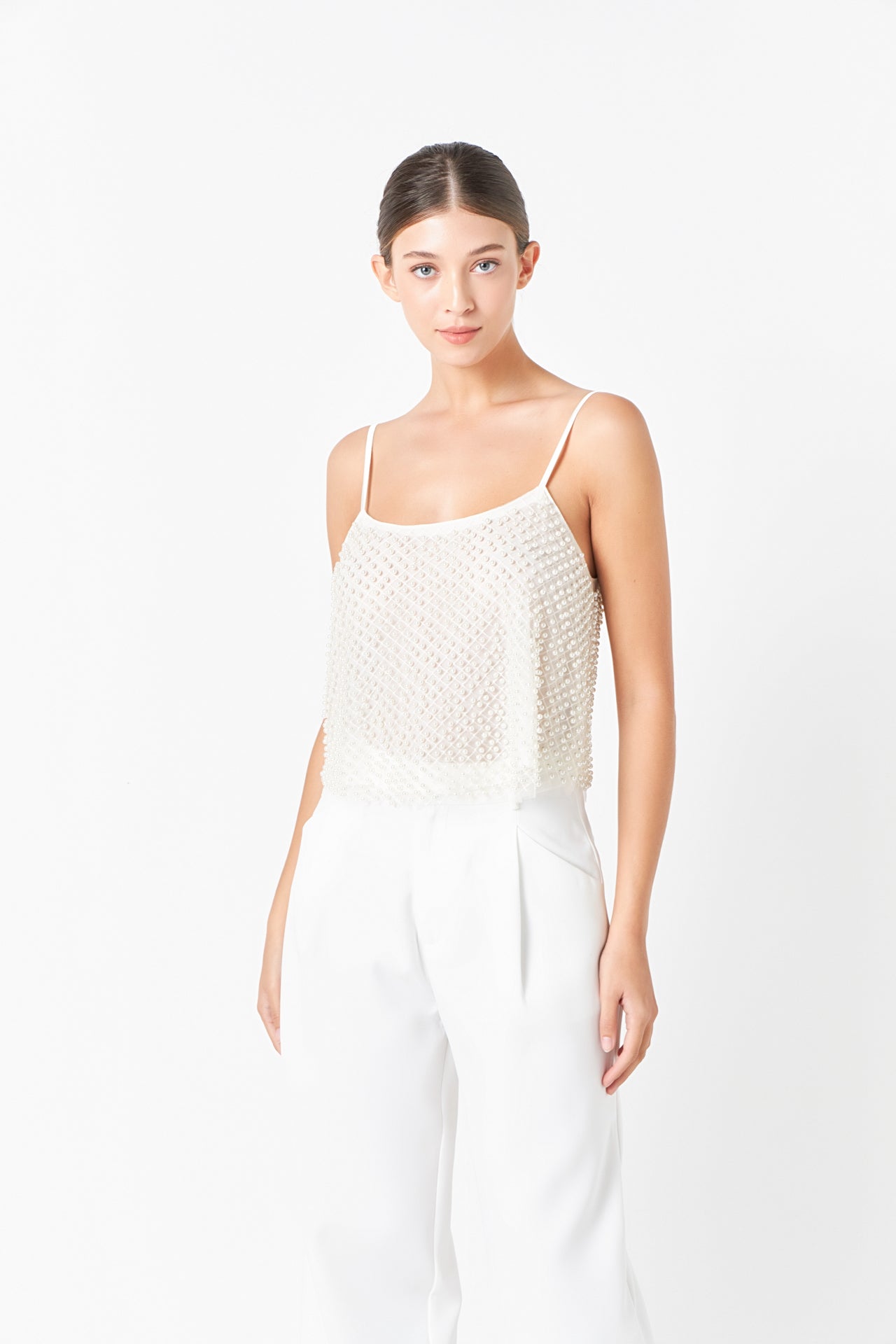 Make a style statement with this Pearl Embellished Cami Top! It features spaghetti shoulder straps and a scoop neck and is lined for extra comfort. With an all-over pearl embellishment design this top is sure to stand out. Perfect for day or night pair it with jeans or a skirt for a glamorous look. Get the trendiest look in town with this great cami top perfect for a night out or a casual day out. Get it now and stay at the top of your fashion game!