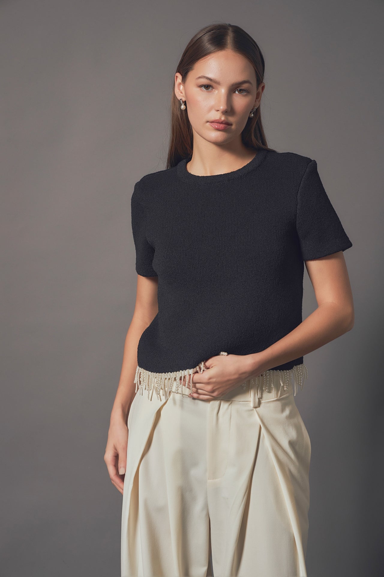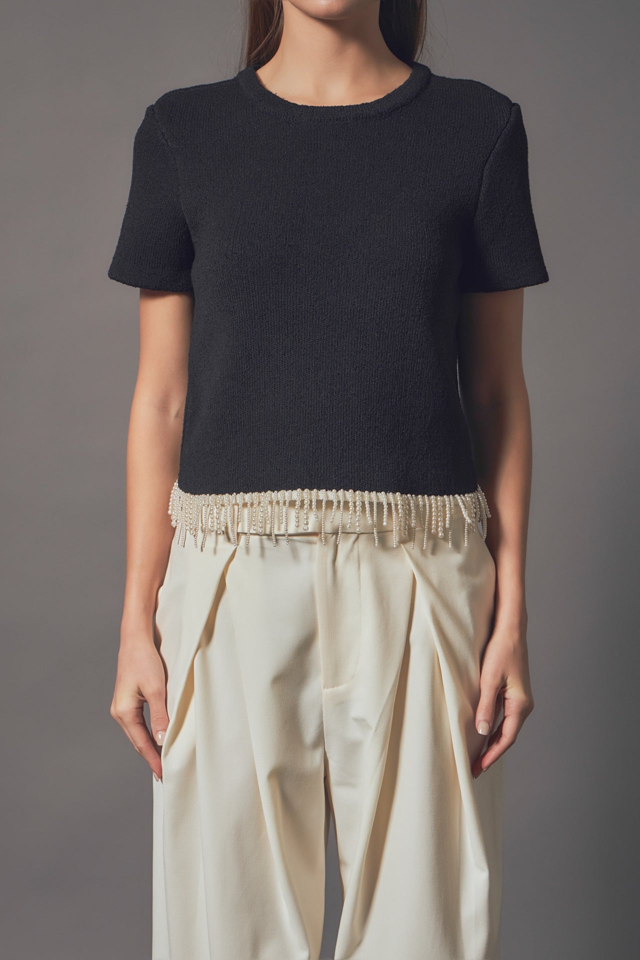 Premium Pearl Trim Knit Top