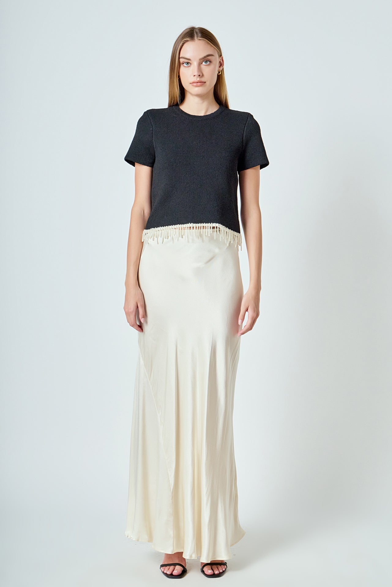 Model 1 CREAM, BLACK: Height 5'10" / Bust 34" / Waist 26" / Hip 36"
