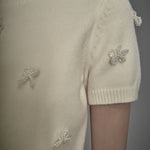 Our Pearl Trim Short Sleeve Sweater combines cozy comfort with subtle sophistication. Soft, lightweight knit is designed with a classic round neckline and flattering short sleeves, while delicate pearl detailing adds a refined touch. Perfect for day-to-night styling, it pairs effortlessly with high-waisted jeans for casual looks or a pleated midi skirt for a polished evening outfit.