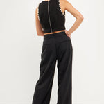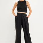 Add a touch of luxury to your everyday look with this pearl-trimmed top. Elevate your style game with this elegant round neckline top. Featuring delicate pearl trim, it's perfect for dressing up or down. We love the feminine and classy feel of this top. Wear it to work, a party, or any other special event and you'll look stunning.
