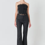This Peekaboo Laced Corset Top provides maximum flexibility with its fitted design and adjustable laced corset. Its tube top fits snugly to your body and is secured by a self cover button for a chic and secure look. Enjoy the perfect fit and stylish look!