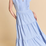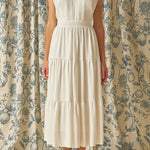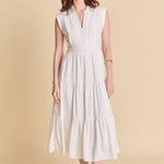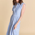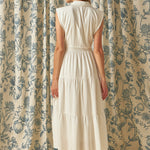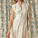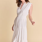 Our Pintuck Details Sleeveless Midi Dress is the perfect addition to your dress collection. The unique pintuck details add a touch of sophistication while the collar and V neckline create a flattering silhouette. The sleeveless design is perfect for warm weather or can be layered with a blazer for a more polished look. Plus the added shoulder pads give this dress a structured and elevated touch. Made from high-quality fabric this midi dress is comfortable and stylish. Perfect for any occasion this dress is a must-have for every fashion-forward woman. Shop now and make a statement in our Pintuck Details Sleeveless Midi Dress!