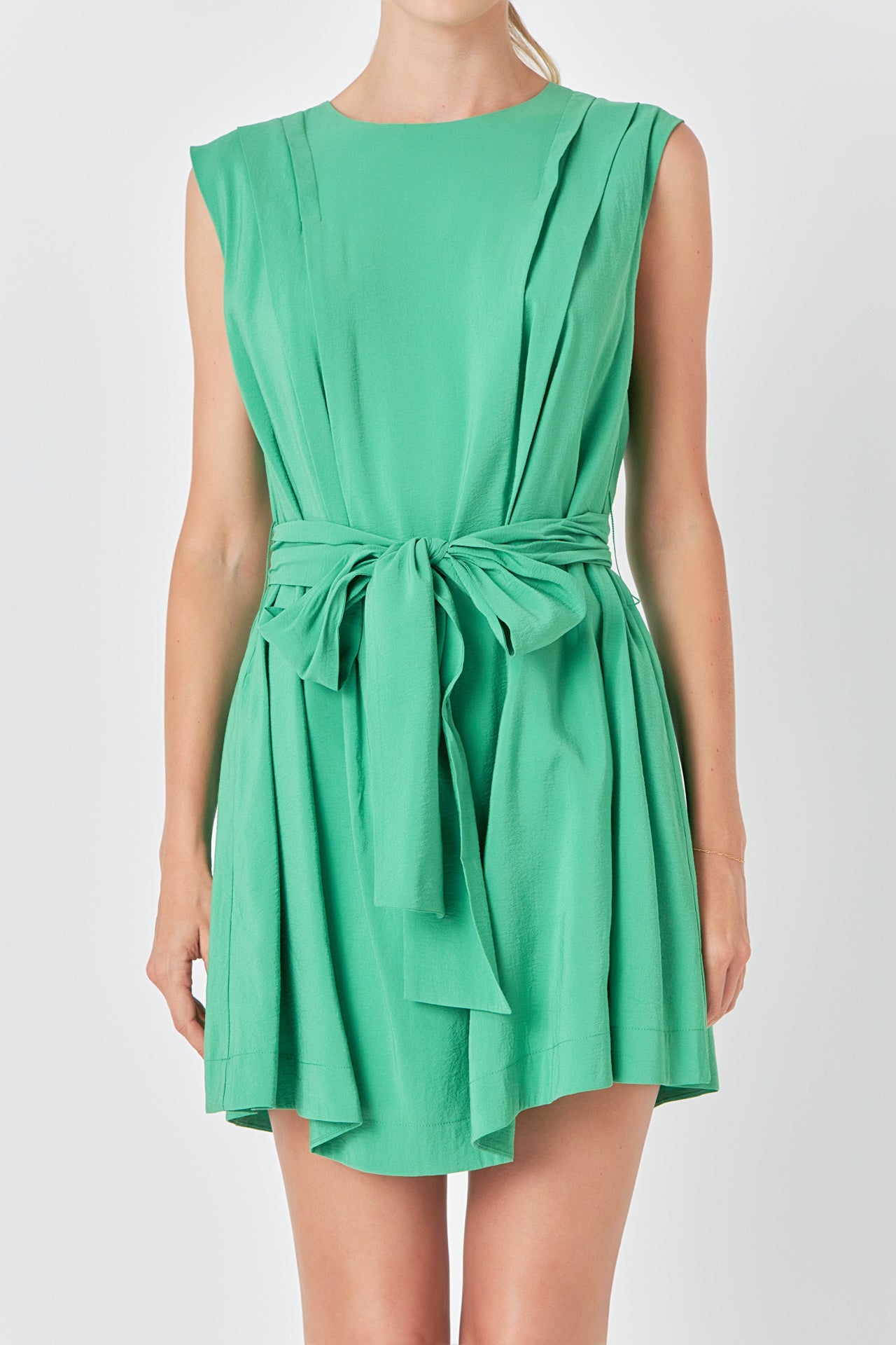 Pintuck Shoulder Belted Mini Dress