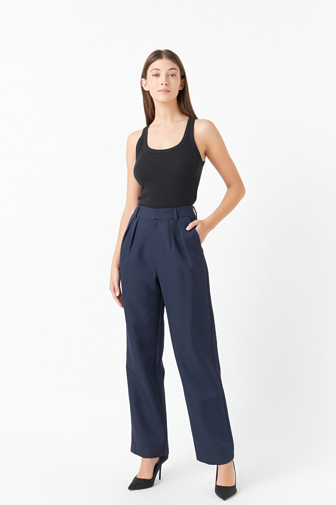 These Pleated High Waist Trousers are the perfect bottoms for a stylish and sophisticated look. With a flattering high waist pleated details and hook and bar closure as well as a zipper these trousers give your outfit a modern edge and effortless style. Perfect for office as well as casual settings these trousers are the ideal choice to upgrade any look.