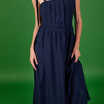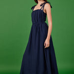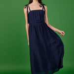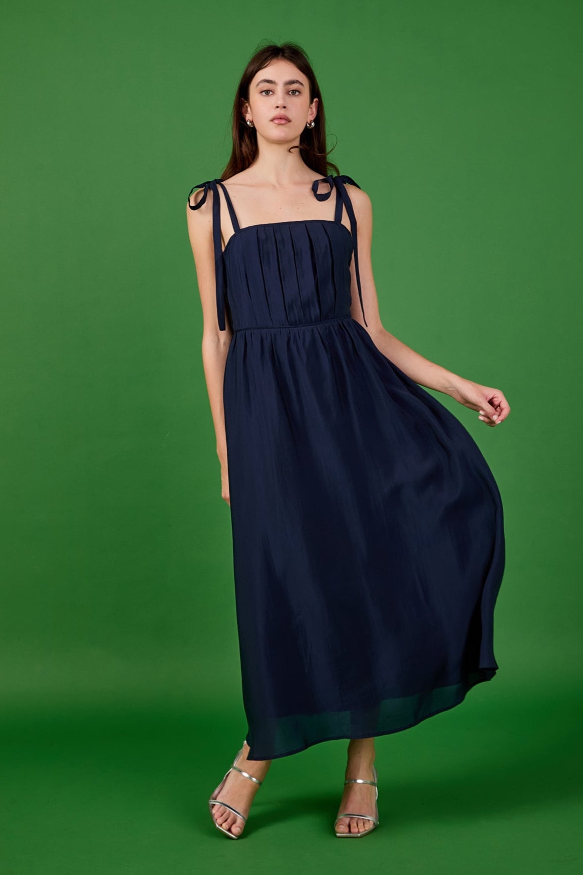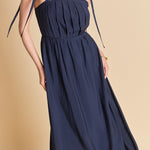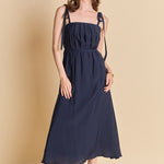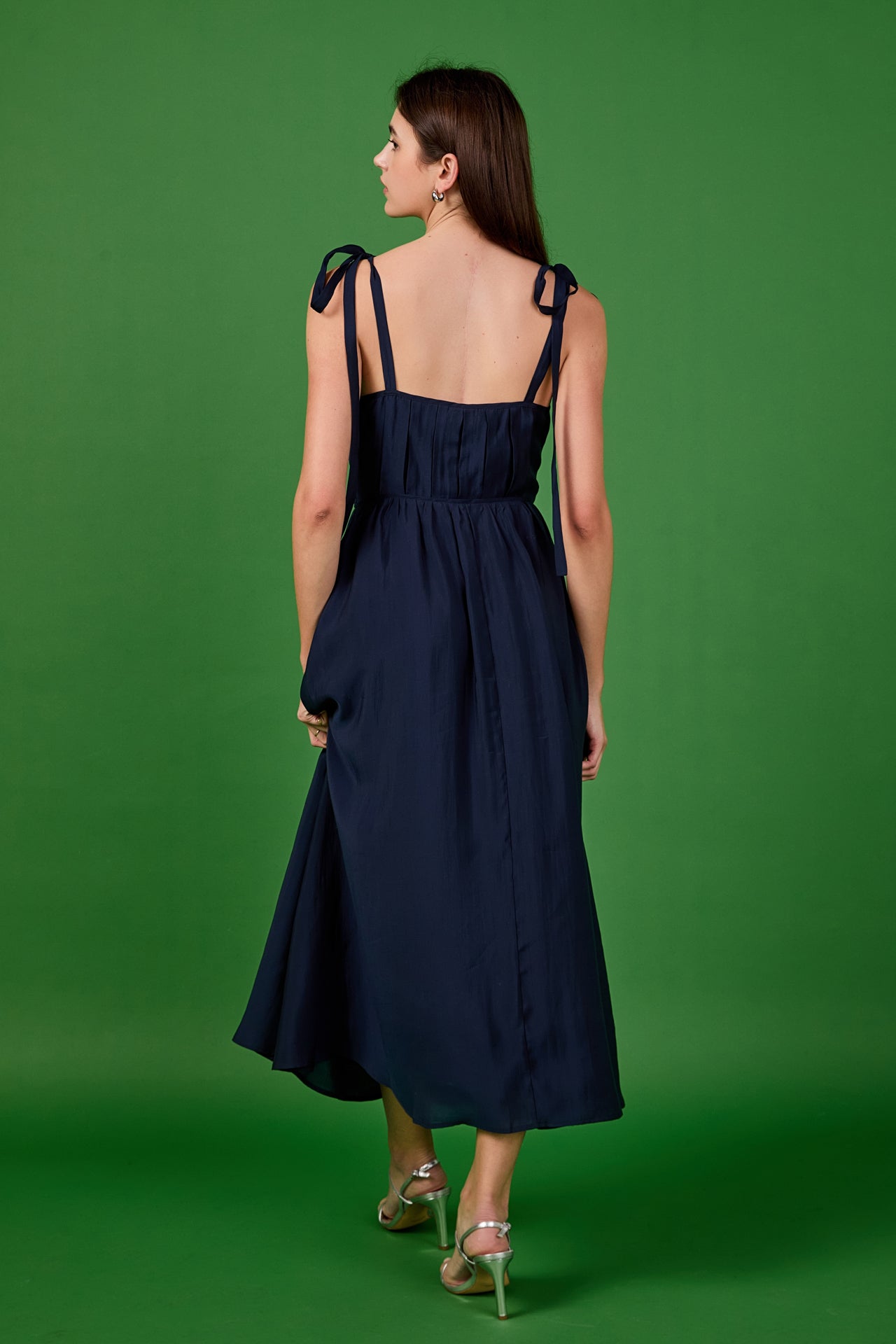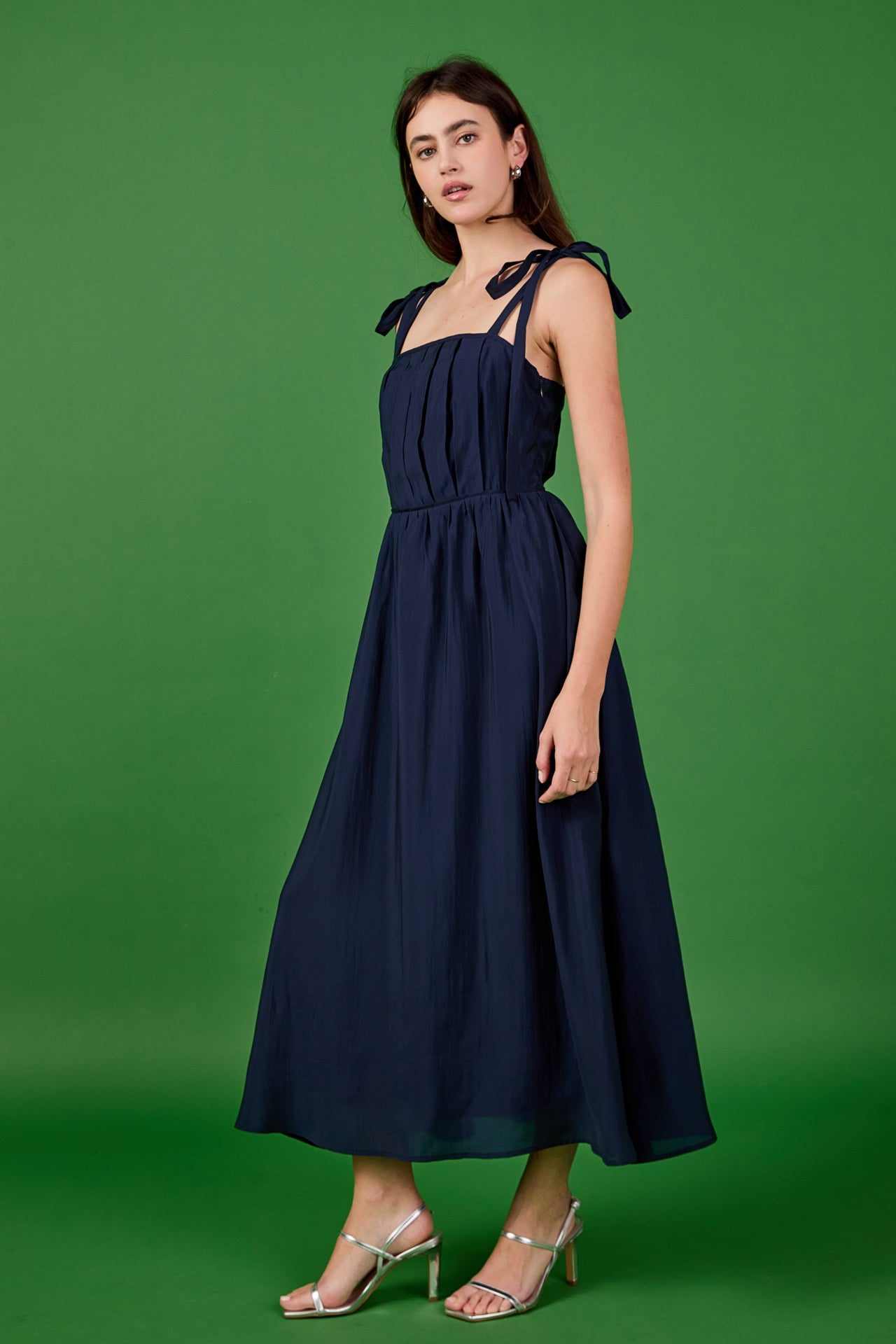 Upgrade your wardrobe with our must-have Pleated Midi Dress. Featuring elegant pleats that add texture and movement to your look this dress is designed to flatter your figure with its fit and flare silhouette. The tie strings add a touch of feminine charm and allow you to cinch in at the waist for the perfect fit. Its midi length is perfect for showing off your stylish footwear while keeping things modest. Perfect for day-to-night dressing this versatile dress is a wardrobe staple. Elevate your style game and make a statement with our Pleated Midi Dress.