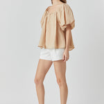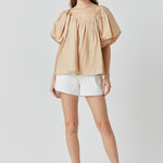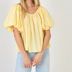 Elevate your style with our fashionable Pleated Puff Sleeve Top. This stylish top features pretty pleated puff sleeves and a round neckline. It's perfect for special occasions or just dressing up your everyday look. Add this top to your wardrobe and you'll have a go-to piece for any special occasion.