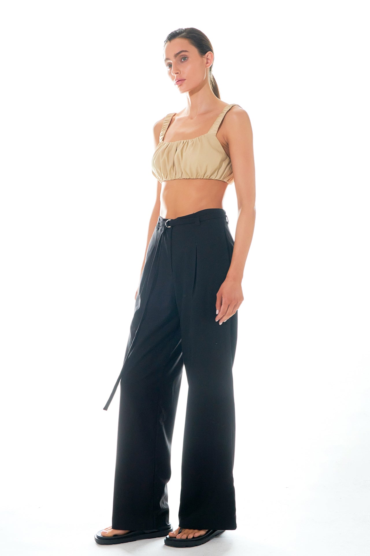 Pleated Wide Pants with Belt