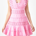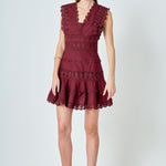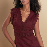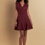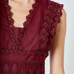 Looking for a pretty little dress to wear this spring? Well, look no further than our Plunging Neck Lace Trim Dress! This mini dress is fitted and features lace trim detail in lilac, white, and burgundy. It's made of 100% cotton, making it perfect for warm weather days. So grab this dress before it sells out and enjoy looking beautiful all season long!