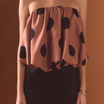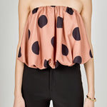 Introducing our Polka Dot Bubble Tube Top. Featuring a flattering tube silhouette and a fun polka dot print, this top adds playful charm to any outfit. The elasticized neckline ensures a secure fit, while the bubble hem creates movement and a whimsical touch. Crafted from lightweight, stretchy fabric, it’s as comfortable as it is stylish. Pair with high-waisted jeans and heels for a night out, or style with shorts for a casual daytime look.