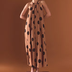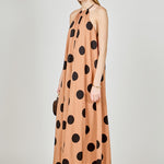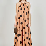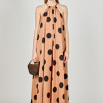 Featuring a flowy, floor-length skirt with a playful polka dot print, this Polka Dot Halter Neck Maxi Dress combines fun and sophistication. The halter neckline and cinched waist flatter your figure, while lightweight, breathable fabric keeps you comfortable all day. Perfect for summer outings or special occasions, this dress is a standout piece for effortless, stylish dressing.