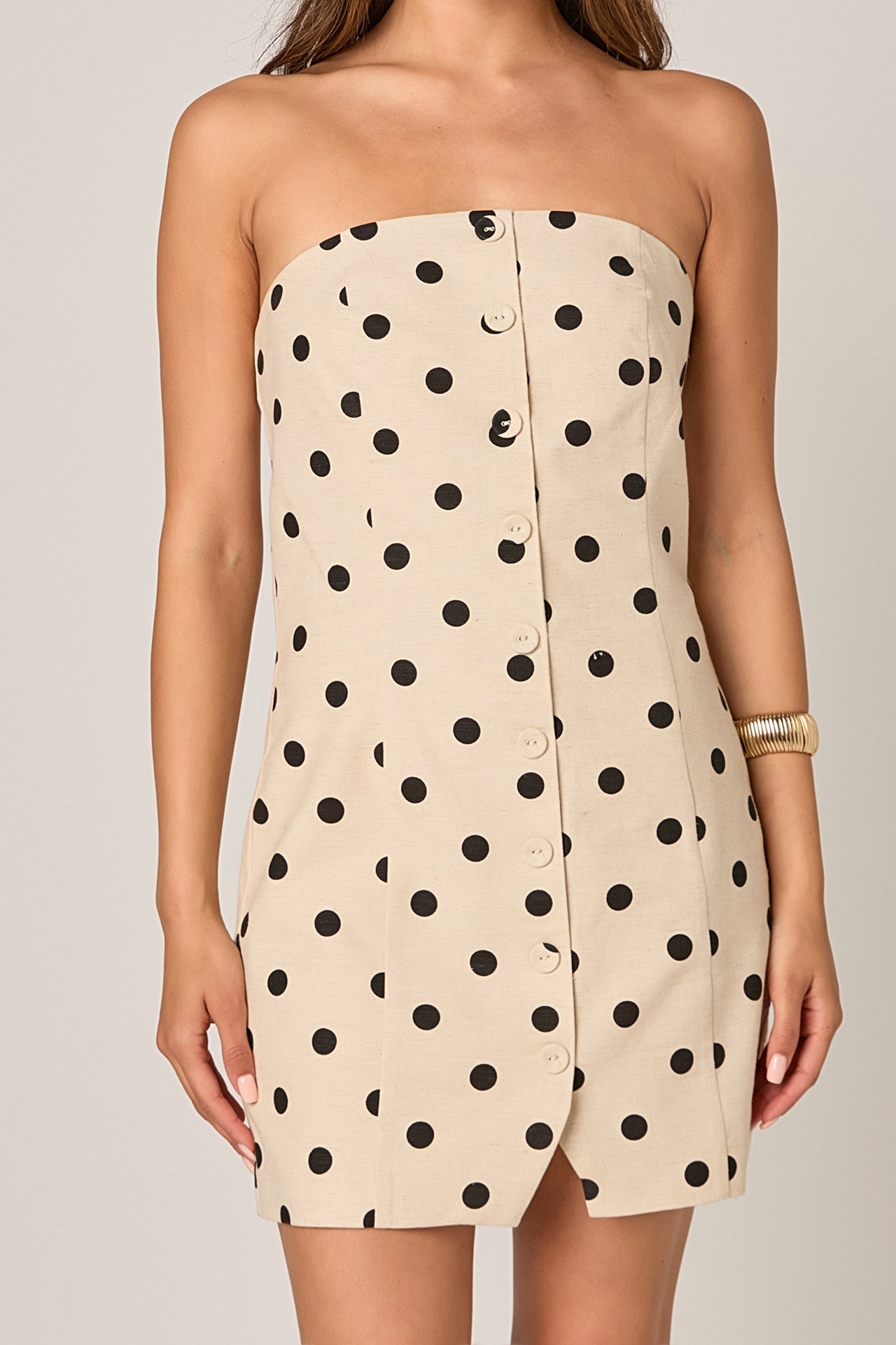 Looking for a fun and flirty dress for the summer? Look no further than our Polka Dot Linen Strapless Dress! With a mini length and strapless design, this dress is perfect for showing off some skin and soaking up the sun. Made from lightweight linen fabric, it's also breathable and comfortable for those hot summer days. The classic polka dot pattern adds a playful touch to the dress, making it a must-have for any fashionista. Whether you're headed to a BBQ or a day at the beach, this dress has got you covered. Shop now and embrace your inner fashionista!