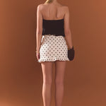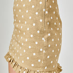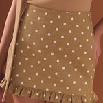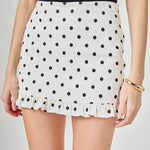 Add a playful touch to your wardrobe with our Polka Dot Mini Ruffle Skirt. Featuring a charming polka dot print and a flirty ruffled hem, this skirt brings fun and movement to any outfit. The elastic waistband provides a comfortable, adjustable fit, while high-quality fabric ensures all-day wear. Style it with a cropped top for a trendy vibe or a blouse for a polished look—versatile, feminine, and effortlessly chic.