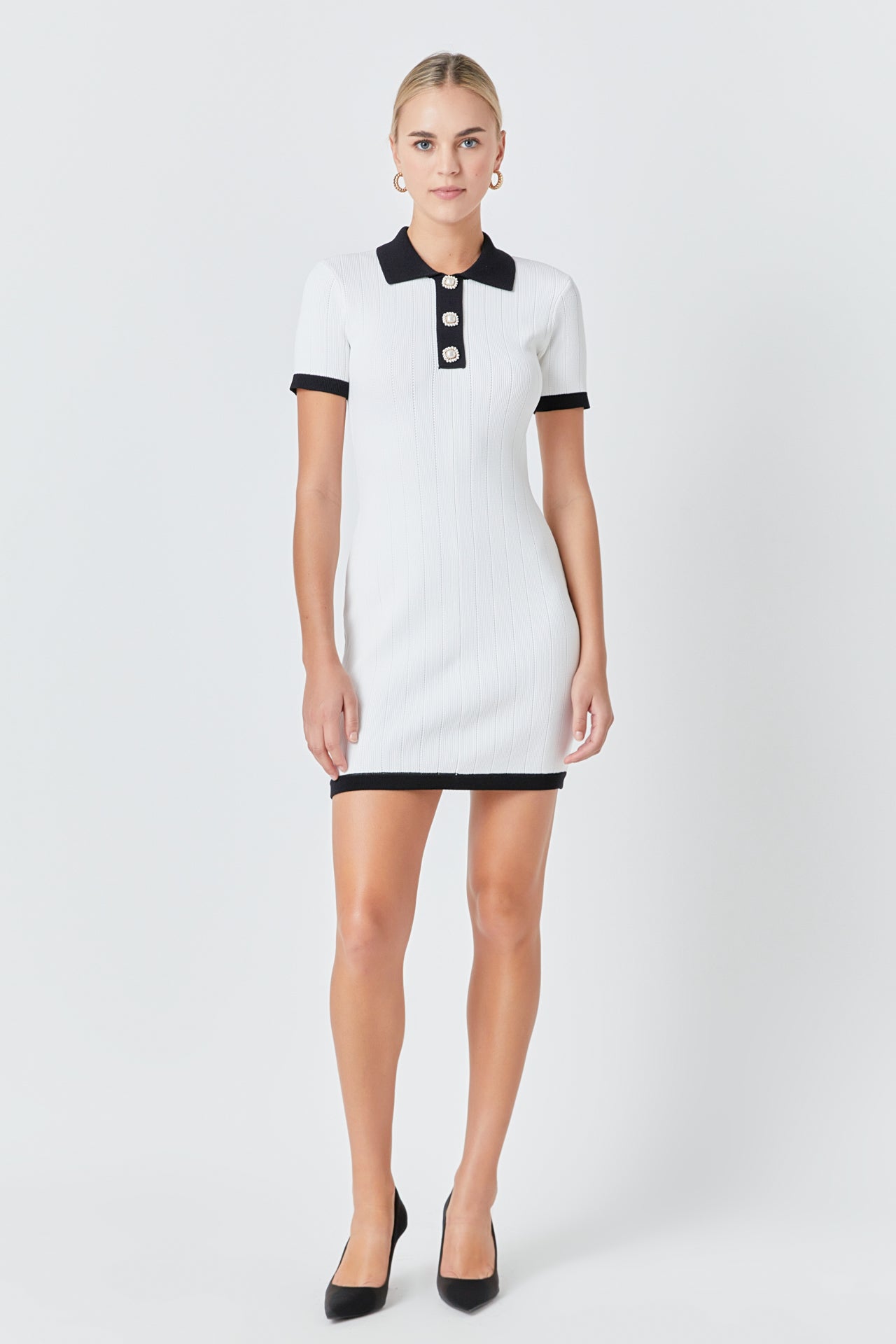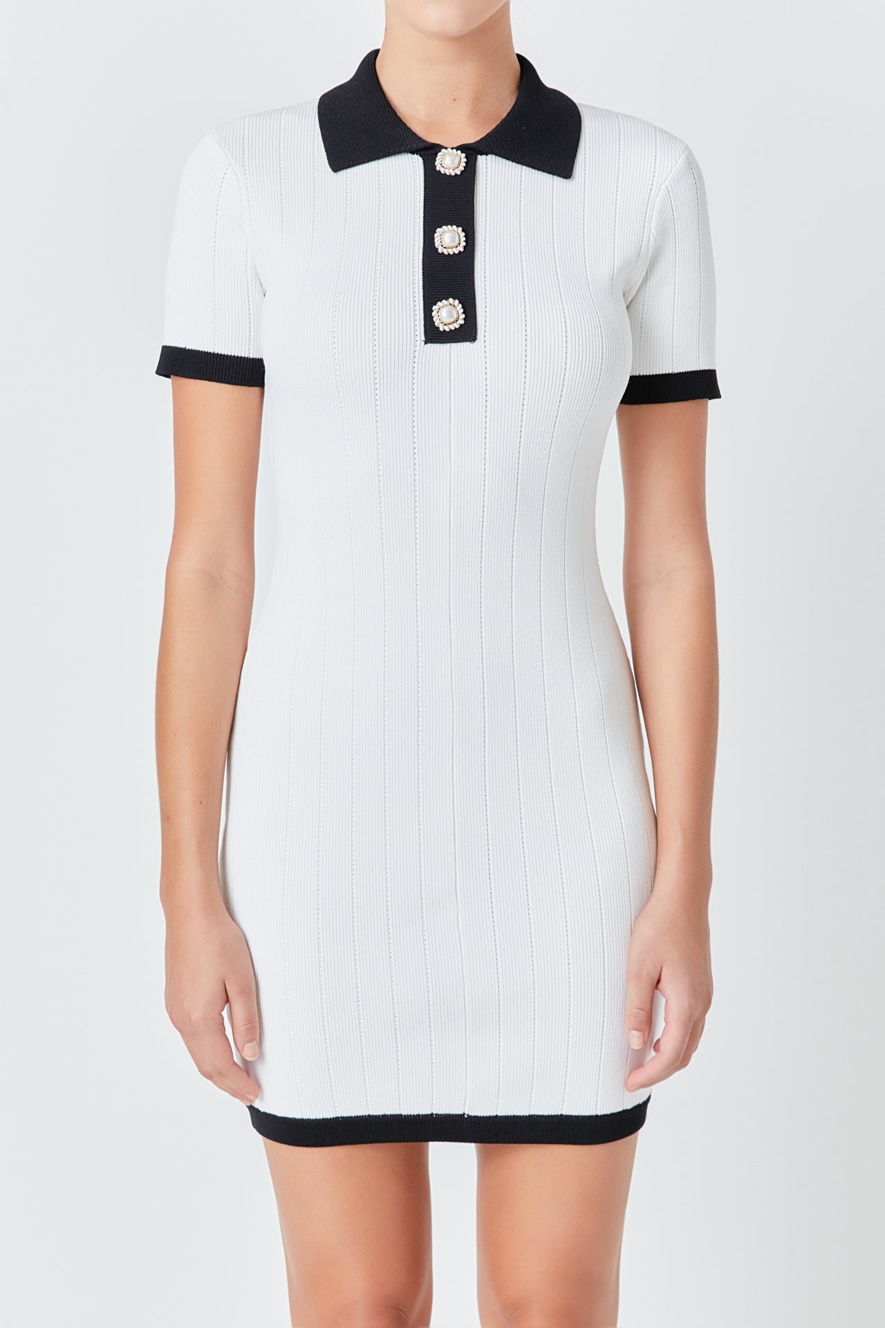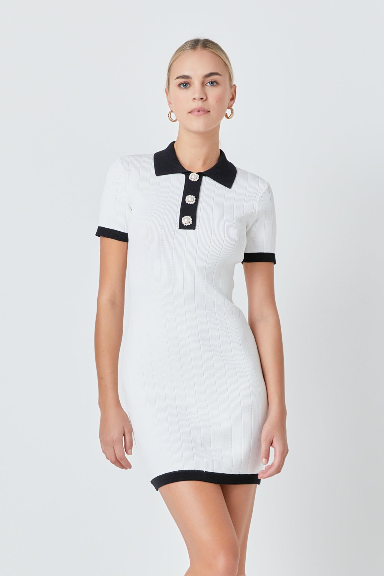 Elevate your wardrobe with our Polo Mini Knit Dress. This versatile dress features a flattering knit down design that hugs your curves in all the right places. The classic collared neckline adds a touch of sophistication while the short sleeves keep you cool and comfortable. The front button with placket detail adds a modern twist to this timeless piece. Perfect for any occasion dress it up with heels or keep it casual with sneakers. Don't miss out on this must-have dress available now.